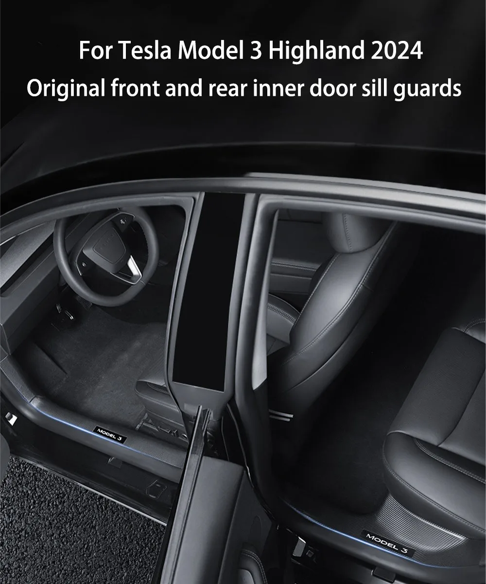 1- 8 Pcs For Tesla Model 3 Highland 2024 ABS Front Rear Door Sill Protector Threshold Strip Anti-kick Guard Panel Waterproof Pad