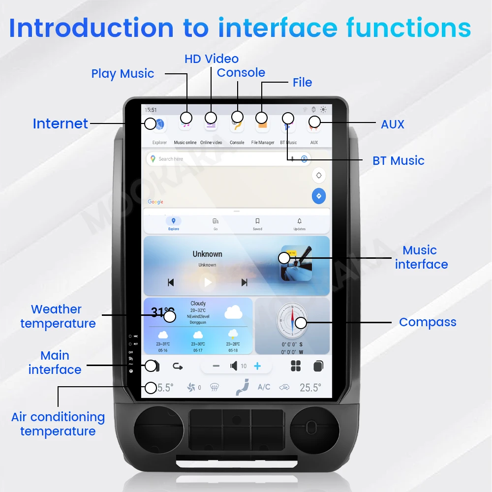 For Ford F150 2015-2020 T-Style Android 13.0 8G+128GB wireless carplay and Android Auto