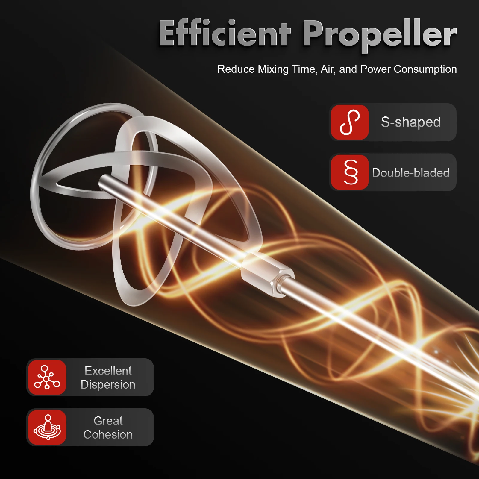 Six adjustable speeds: 6 adjustable speeds (330-930RPM) enable you to adapt flexibly to different needs depending on material viscosity.