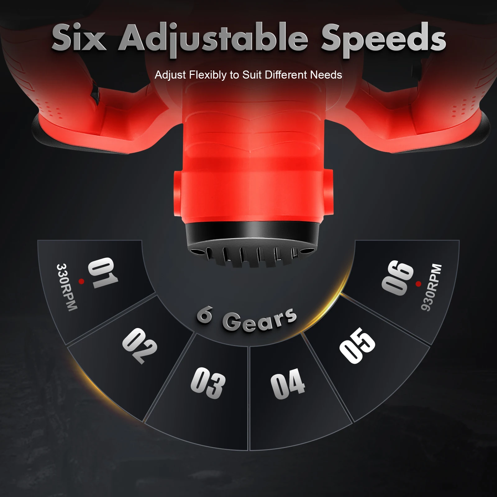 Easy to use: The one-touch power switch and 6-speed adjustable speed switch let you set speed and change speeds easily. At the same time, the one-touch lock button helps you easily lock the speed to reduce finger fatigue.
