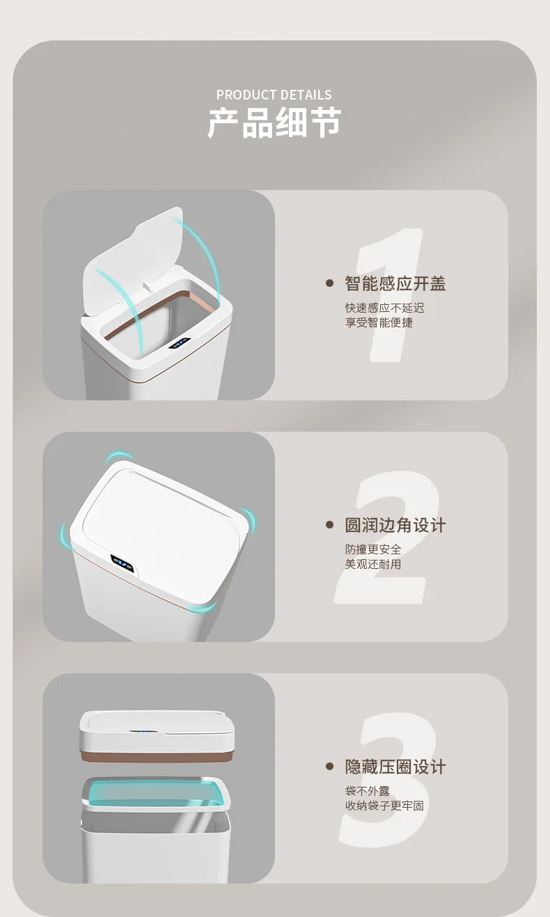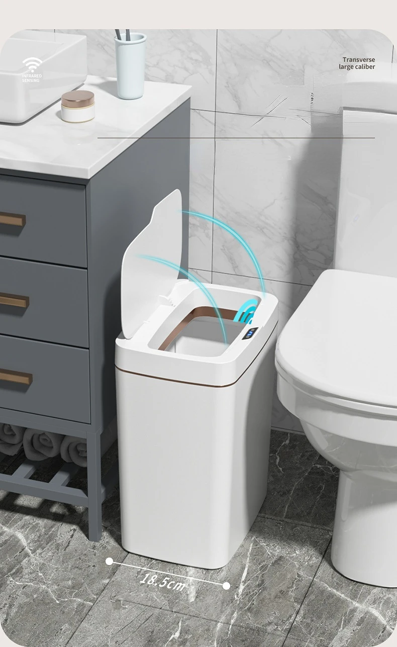 18L Smart Bathroom Trash Can Automatic Bagging Electronic Trash Can White Touchless Narrow Smart Sensor Garbage Bin Smart Home