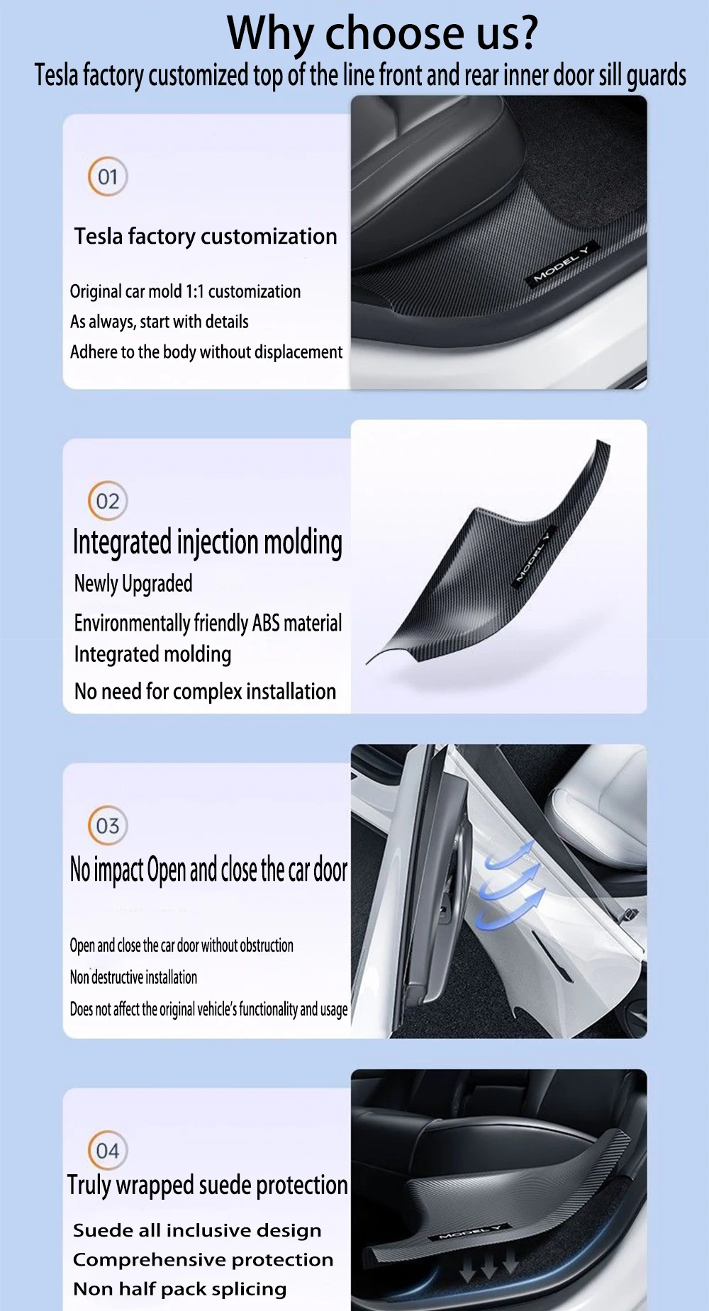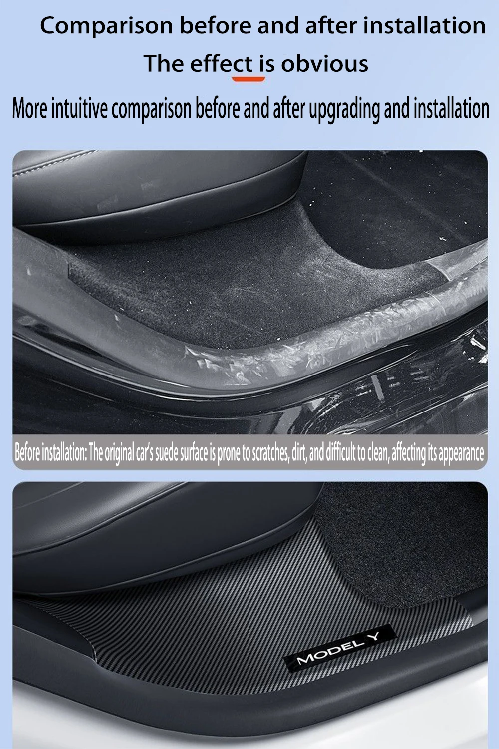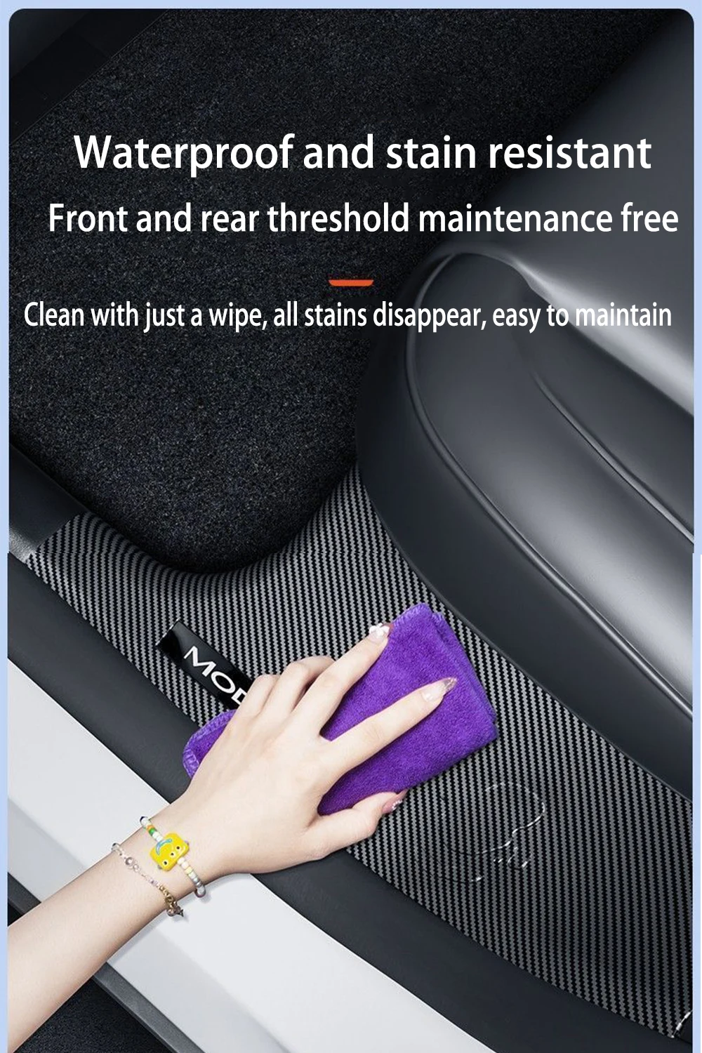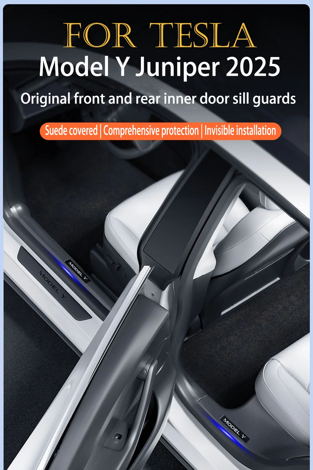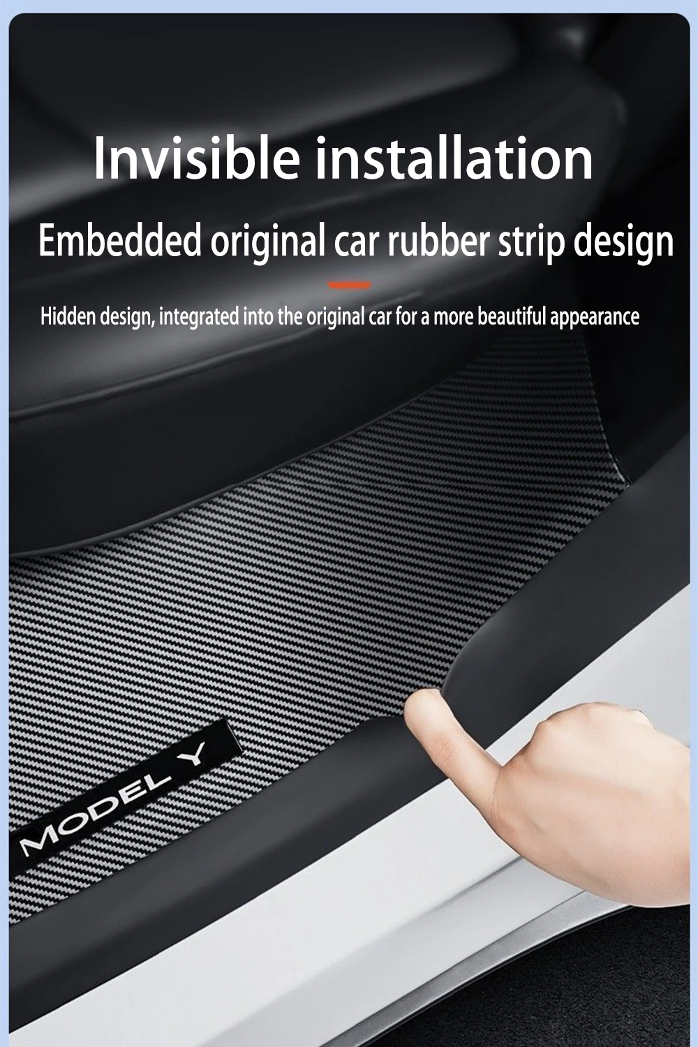 2 4 8Pcs For Tesla Model 3 Highland 2024+ Model Y Juniper+ 2025 ABS Front Rear Door Sill Protector Threshold Strip Anti-kick Guard Panel Waterproof Pad
