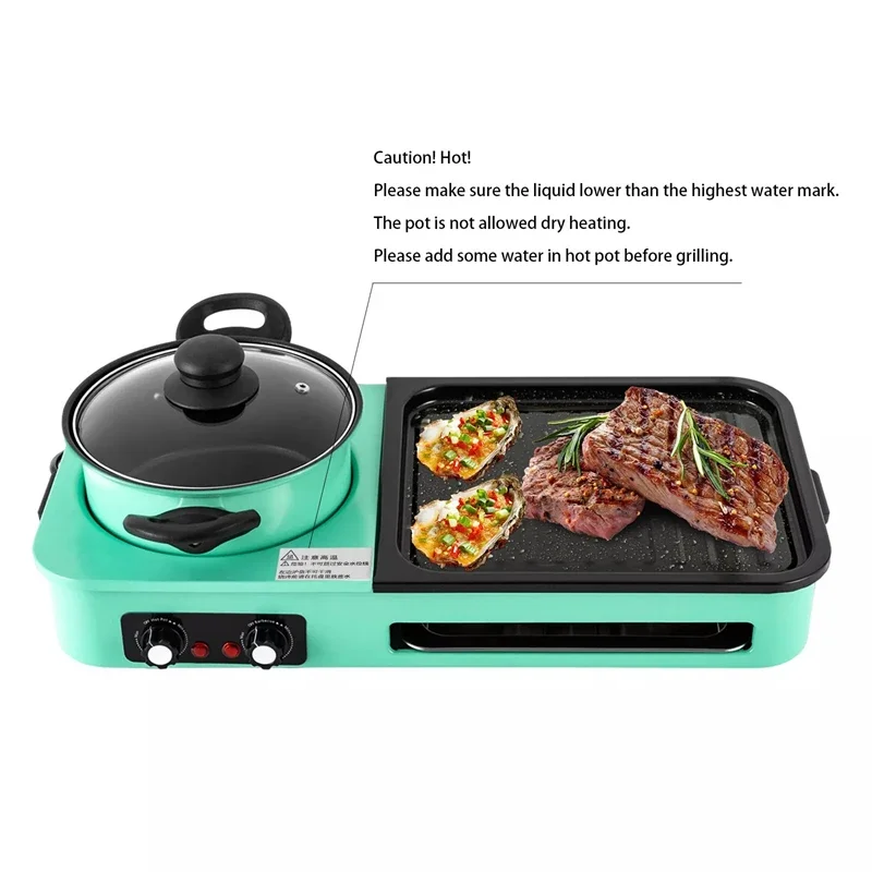3 in 1 Korean Electric Baking Pan Soup Hot Pot Grill Plate Instant Kitchen Fondue Detachable and Washable Non-Stick Baking Pan