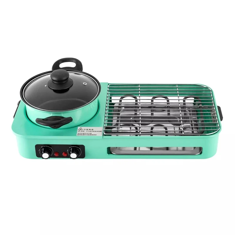 3 in 1 Korean electric baking pan Soup Hot Pot Grill Plate Instant Kitchen Fondue Detachable and washable With deeper and larger size baking pan.