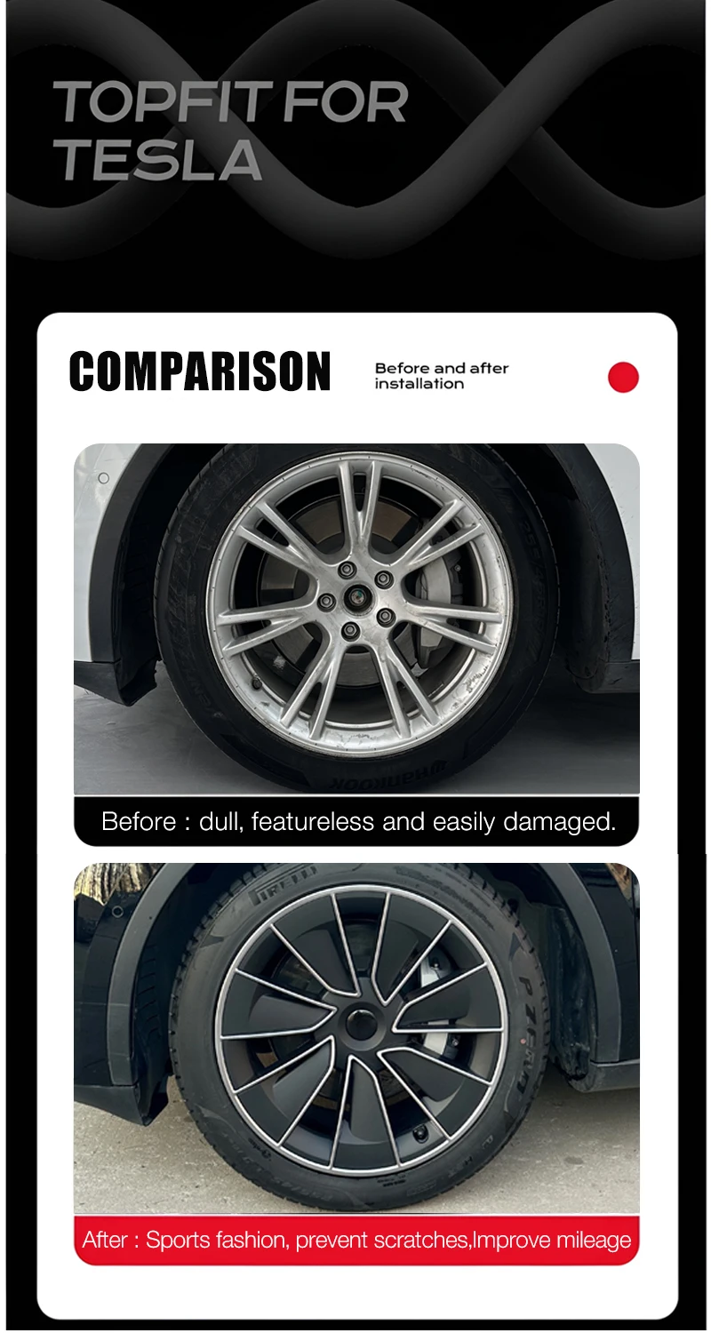 1. It is more beautiful than the original hubcap, which can increase the sportiness of your model y and make your car stand out from other model y
