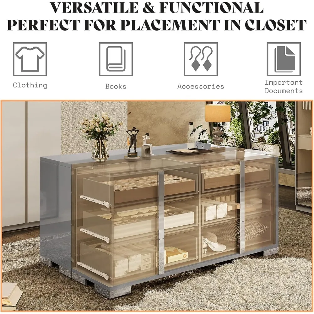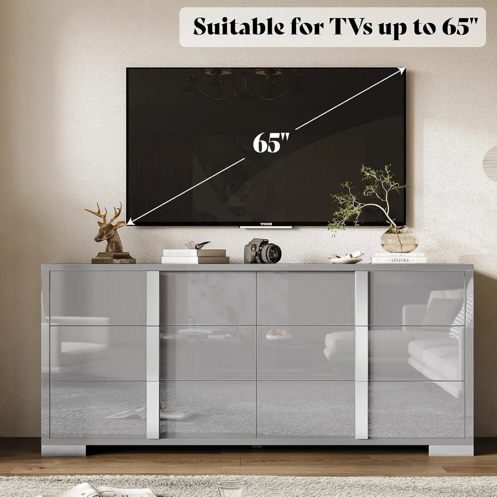 • [Modern High Gloss] 6 Drawers Dressers boast high gloss surface with silver grooved handles and unique cabinet feet, adding depth and texture to its appearance. Easy to clean and maintain for a lasting shine