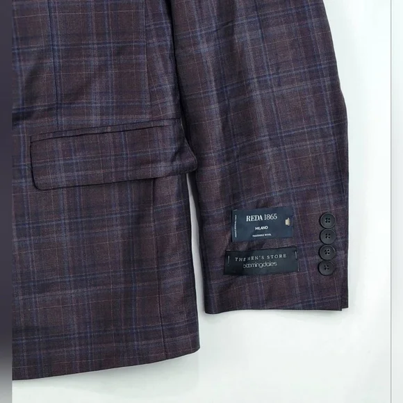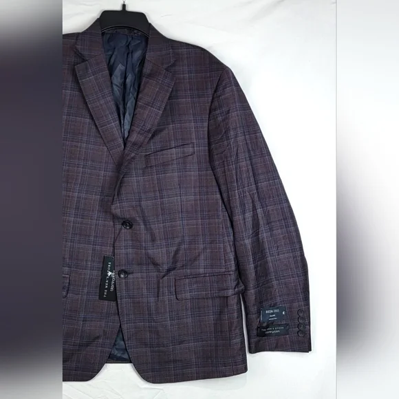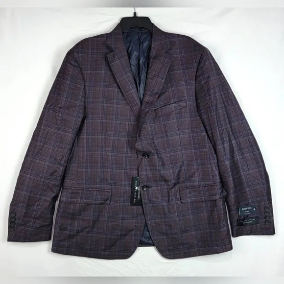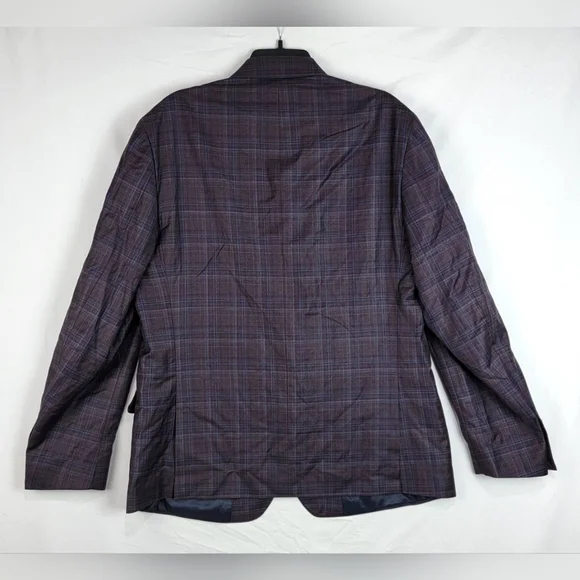 $548 The Men's Store at Bloomingdale's Regular Fit Wool Tonal Plaid Sport Coat Suit BlazerNotch lapelTwo-button closureFour nonfunctional sleeve buttonsTwo front patch pockets, left chest welt pocketSide ventsShoulder to hem 31"Shoulder 18.5"Pit to pit 21.5"Sleeve 26.5"Measurements are taken laying flatThe size may have 0.5"-1" differs due to manual measurement. Size : 44RColor : Purple#Lot11