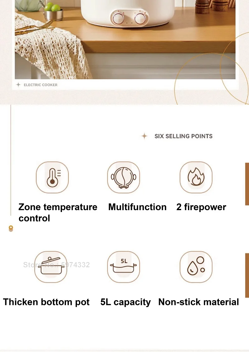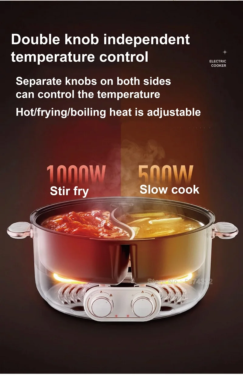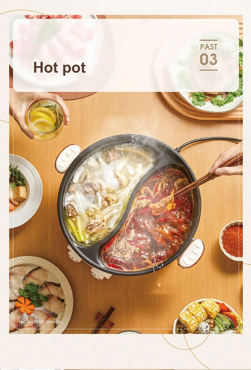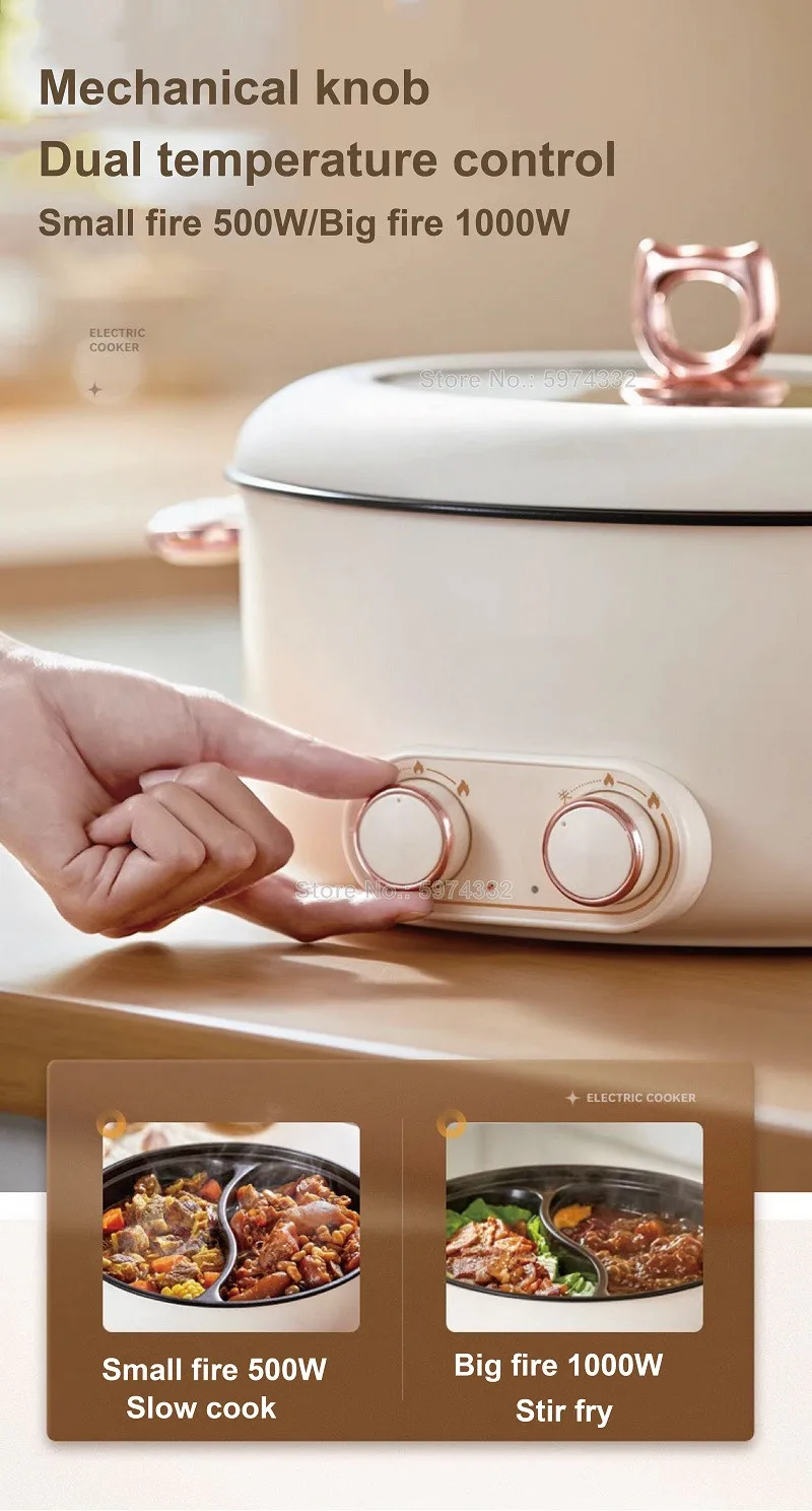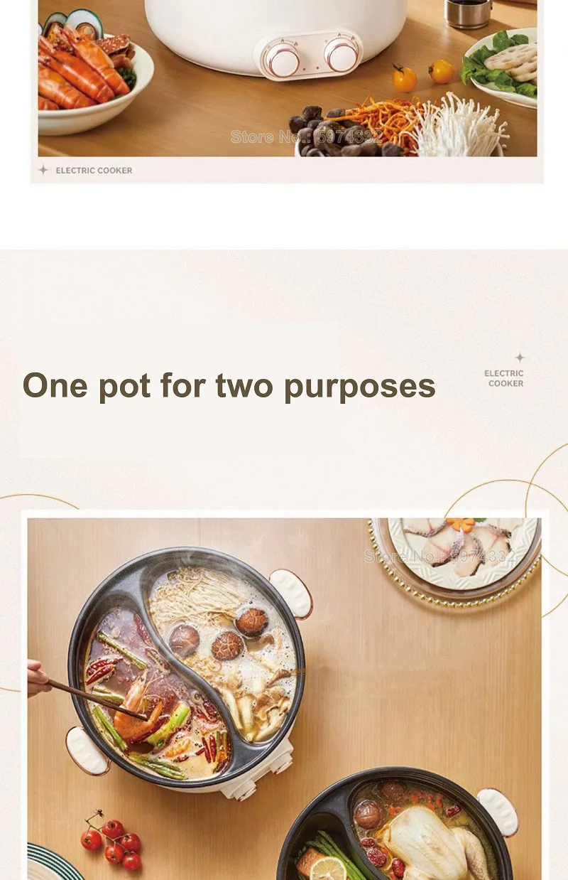 5L 6L Home Yuanyang Electric Hot Pot Home Electric Boiled Pan Large Capacity Double Soup Pots Non Stick Electric Frying Pan 2000W