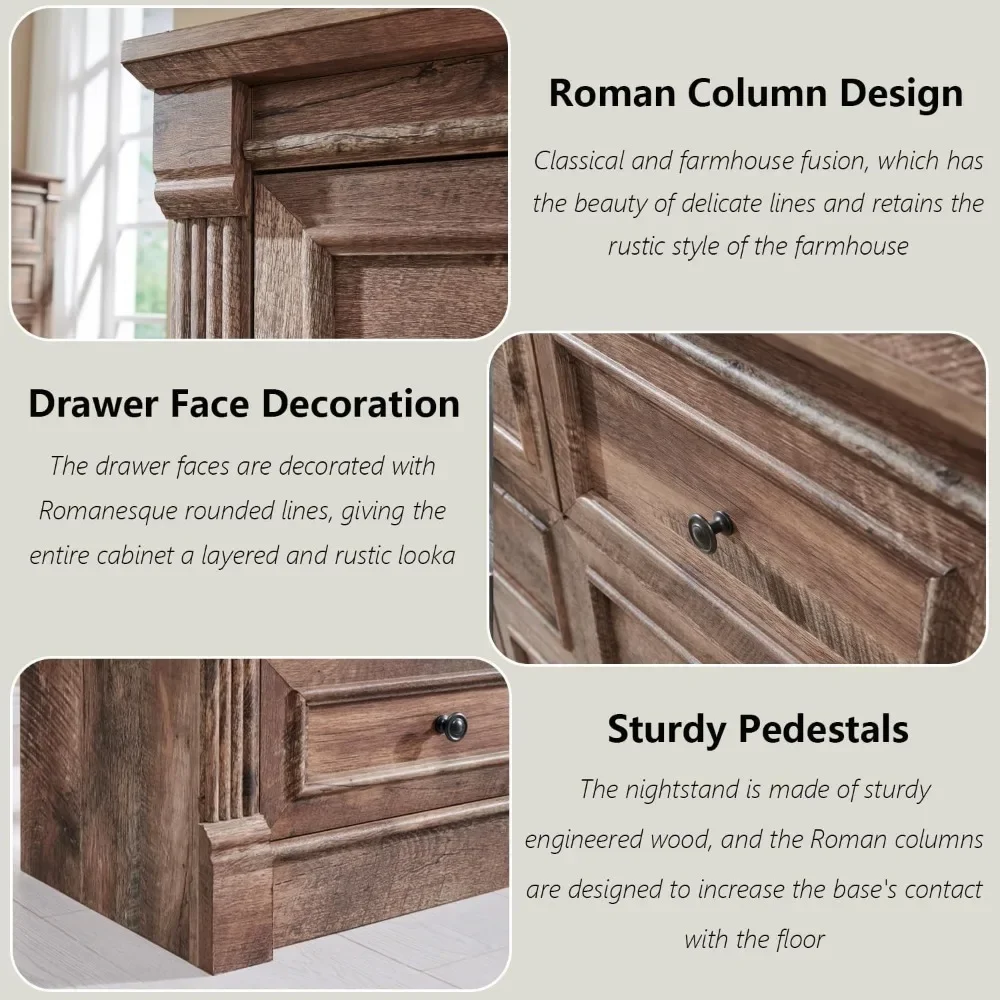 • ROMAN COLUMN DESIGN: Add a touch of rustic charm and classical elegance to your bedroom with our farmhouse nightstand, featuring Roman column legs. The detailed, three-dimensional lines of the columns bring a sophisticated classical element, while the farmhouse style ensures a cozy and inviting feel.