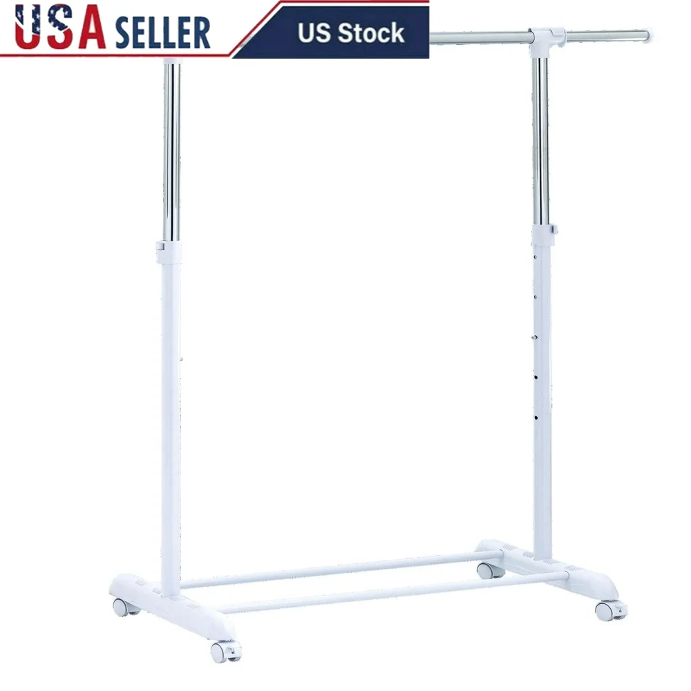 Get organized around the house with this durable and classic adjustable garment rack. With this product, you can hang your clothes with confidence. Chrome & White color for a sk appearance, and it is easy to install and requires no tools. The innovative space-saving design maximizes your unused space. This garment rack easily stores all of your clothing and is great for everyday use. The bottom bars can even be used for shoe storage! Trust your garments to the adjustable durable rolling garment rack. Don't get yourself caught in a mess of garments. Assembled Product Size: 33. 07-47. 64W x 17. 32D x 48. 62-64. 17H inch/84-121W x 44D x 123. 5-163Hcm. Assembled Product Weight: 2. 30kgs/5. 06lbs.