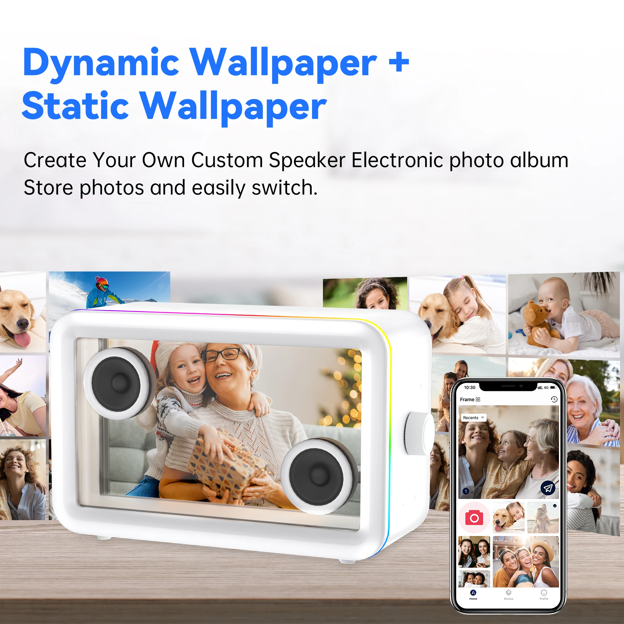 Digital Photo Frame Design: This Bluetooth speaker can also function as a digital photo frame. You can send warm photos or dynamic pictures and videos through an app to the speaker and choose your favorite photo or video as the wallpaper.