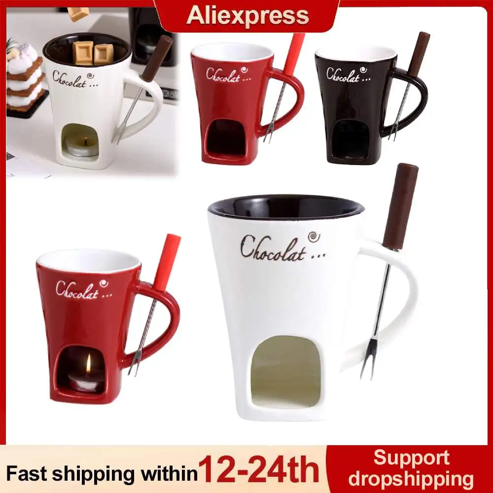 Feature: 1.Accelerated Melting: The chocolate fondue mug design at the base accommodates small candles, ensuring even heating to effortlessly melt your cheese chocolate melting ceramic mug components. 2.Versatile Cooking Pot: This candle heating food ceramic mug system is perfect as a mini fondue container, allowing you to enjoy delicious fondue on-the-go, ideal for cozy gatherings. 3.DIY Dessert Maker: Perfect for crafting ceramic chocolate cup drinks, cheese sauces, or any other sweet treats. Unleash your creativity and make delightful desserts with ease. 4.Premium Ceramic Construction: Made from high-quality ceramic and fired at high temperatures, this ceramic fondue mugs are safe, and heat-resistant. Easy to clean and long-lasting. 5.Perfect Gift Set: Comes with thoughtful forks and candles, this chocolate fondue mug is a perfect gift for anyone who enjoys making fun, tasty desserts. Ideal for celebrations, parties, or cozy nights. Specification: Origin: Mainland China Product size: 250.00x160.00x110.00mm Product size: 9.84x6.3x4.33inch Material: Ceramic Capacity: 101-200ML