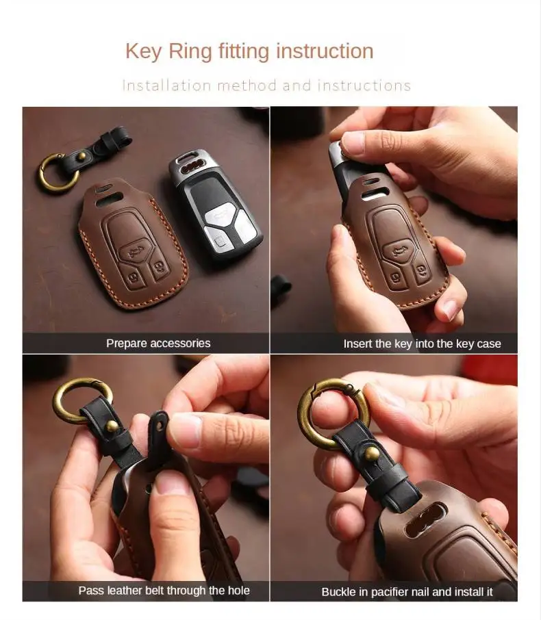 {Material}:The key case made of genuine cowhide leather (another name:Crazy-Horse leather),hand sewing, exquisite workmanship.