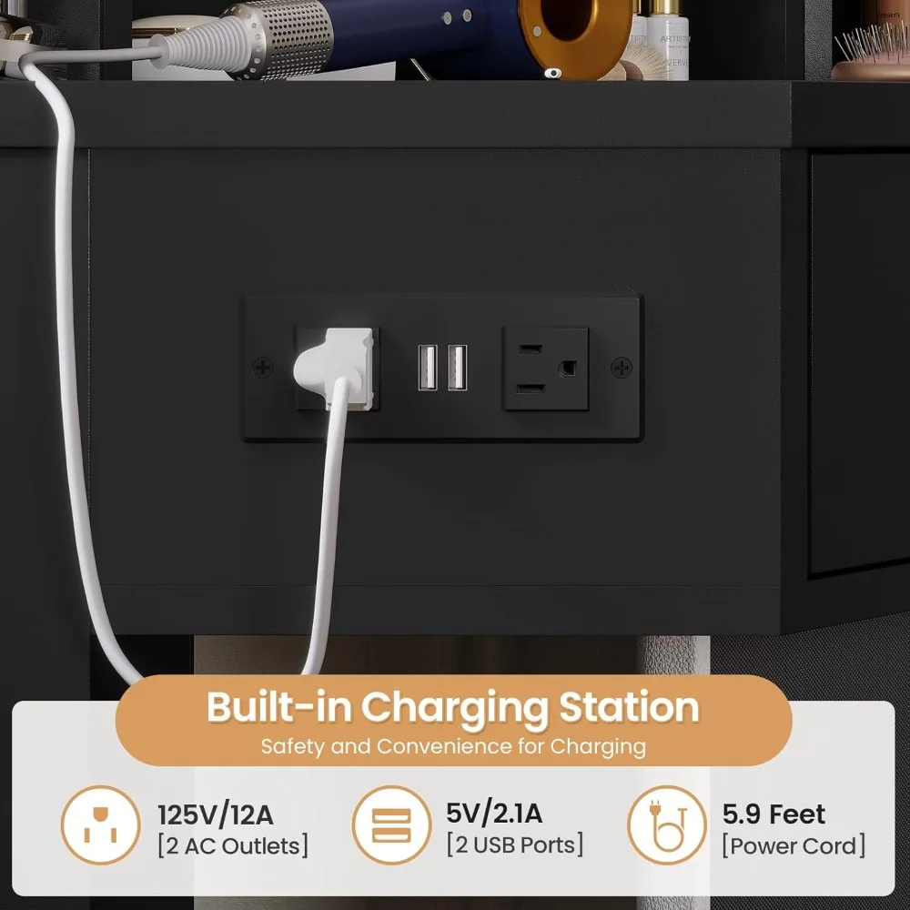 • 【Vertical Power Outlet】Need to charge your phone or use your favorite styling tools? No problem. The vertical power outlet keeps your devices powered up and ready to go without the mess of tangled cords.