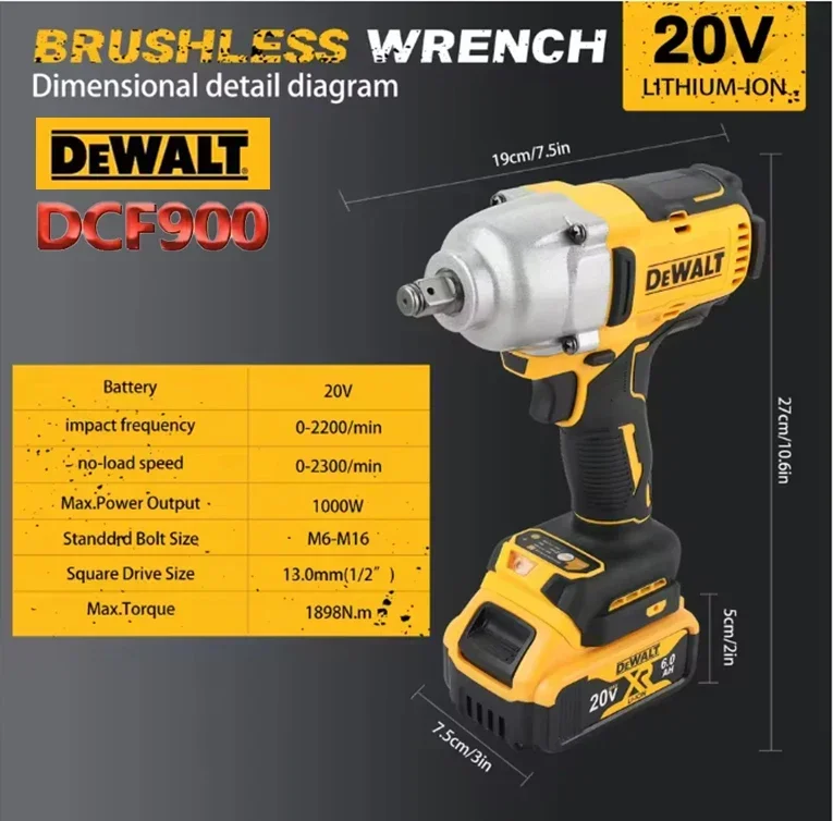 DEWALT DCF900 kit 1/2 inch brushless cordless high torque impact wrench, 1396N. M, power tool DEWALT 20V battery charger