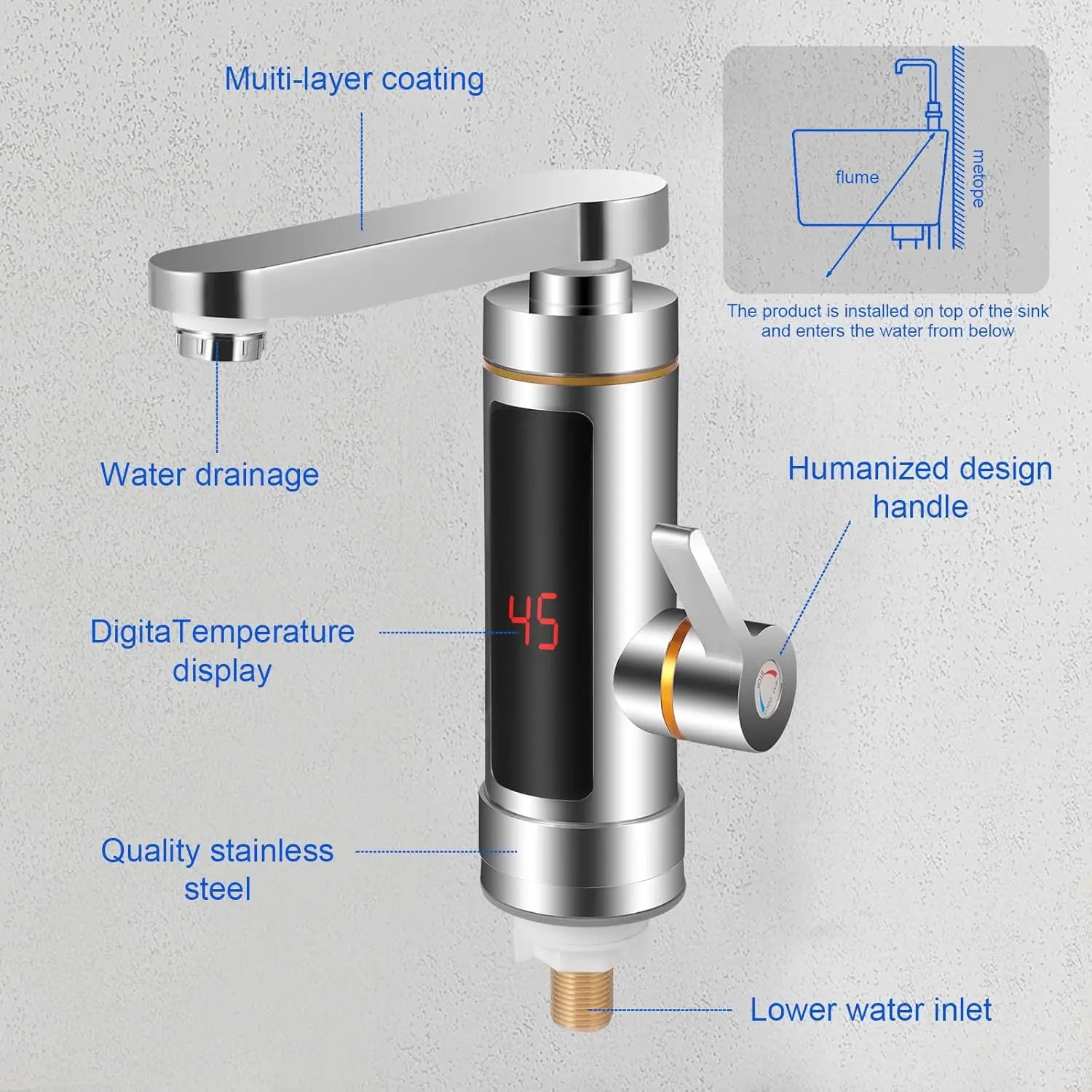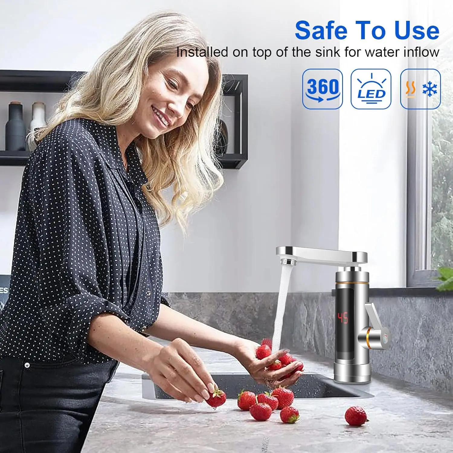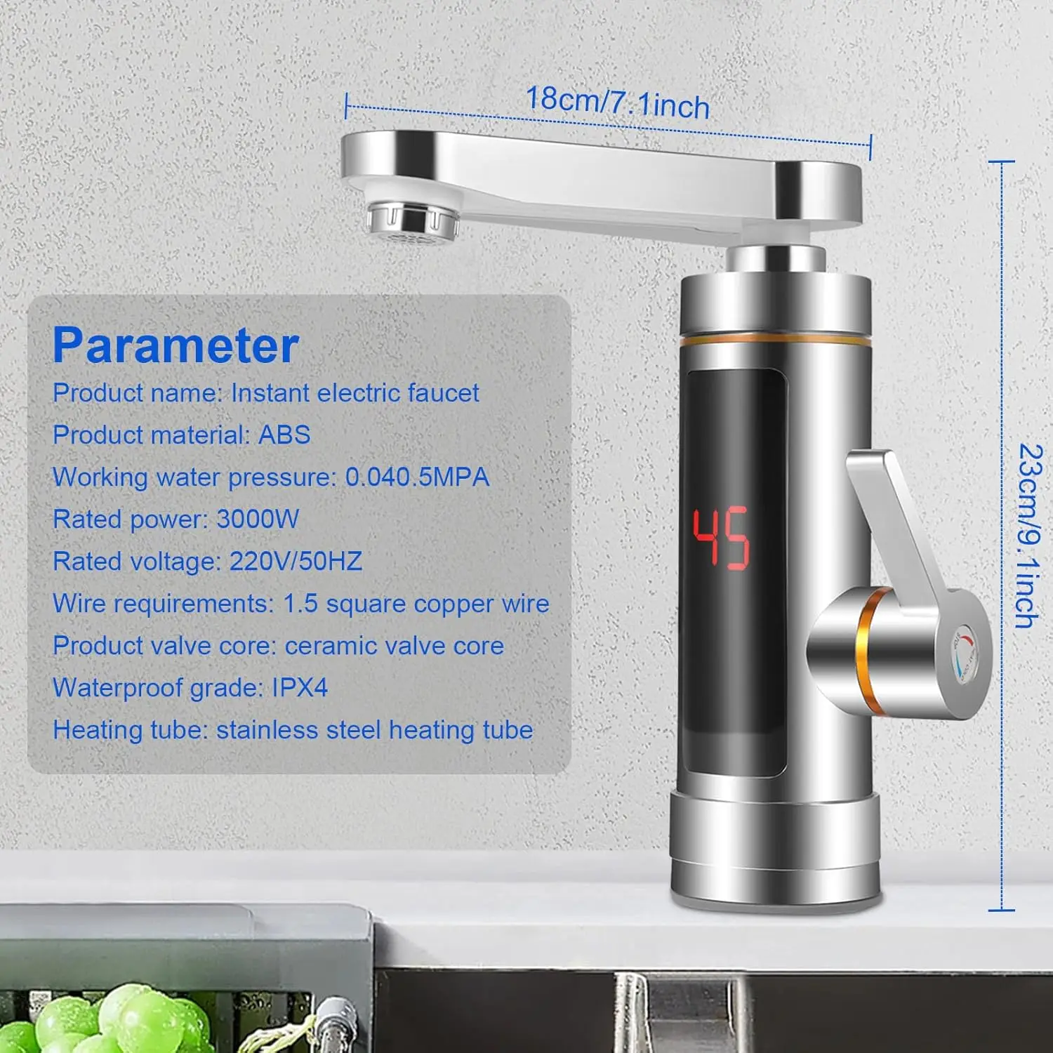 【SAFE TO USE】This electric tap adopts the water area and the circuit area separation design to prevent the leakage of water or electricity. And the anti-corrosion heating tube doesn’t produce patina to ensure the quality of water.
