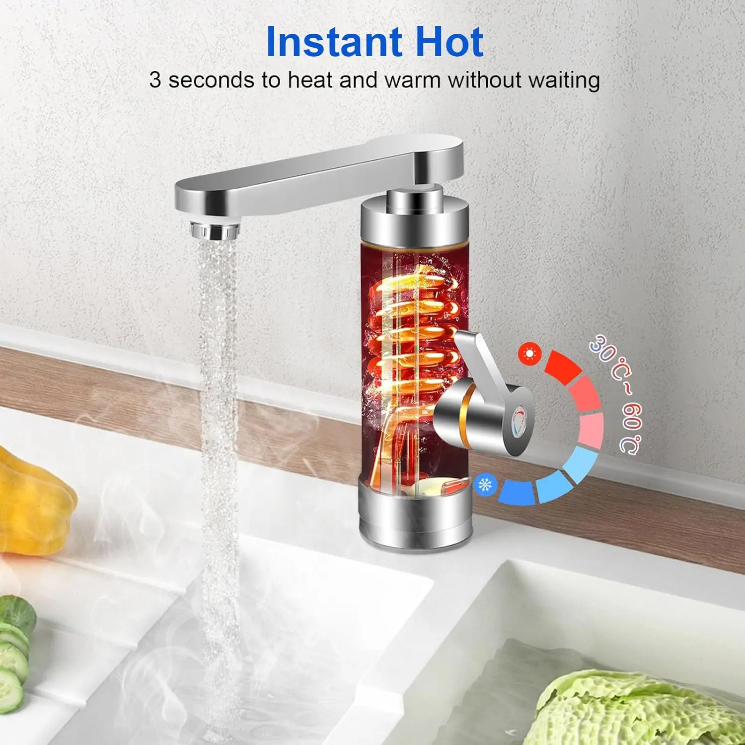 【FAST HEATING】With the stainless steel heating tube of 3000W, water can be heated in few seconds without waiting too long.NOTE: Temperature at about 30 ℃ to 60℃ ,the thinner the water flow, the higher the temperature.