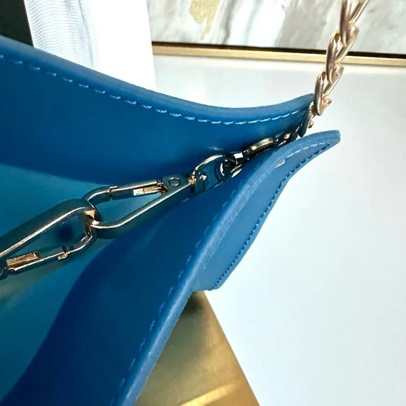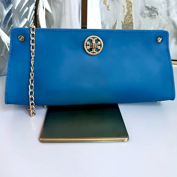 Collector’s itemEUC TORY BURCH AUSTIN JELLY CLUTCH RARE Some wear and light scratching throughout as it is made of PVC Jelly but it is in EXCELLENT CONDITION and wear is hardly noticeable unless up close.Model – 21139902Colour – Evening SkyThe Austin Jelly Clutch lends a pop of color — and fun — to any look. Its chic, compact design easily holds a smartphone and other small essentials. The resilient, water-resistant material gives it a casual feel and makes it ideal for carrying poolside or at the beach.(Unbranded Chain added: will include unbranded chain as free gift)Translucent PVC Jelly.Turnlock closure with magnetic snaps in corners.Gold tone metal hardware.Height: 4.75" (12 cm)Length: 10.75" (27 cm)Depth: 2.5" (6 cm)