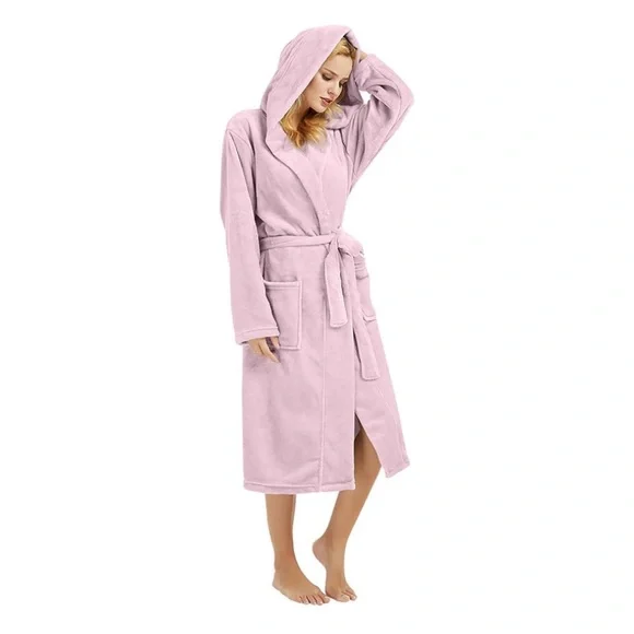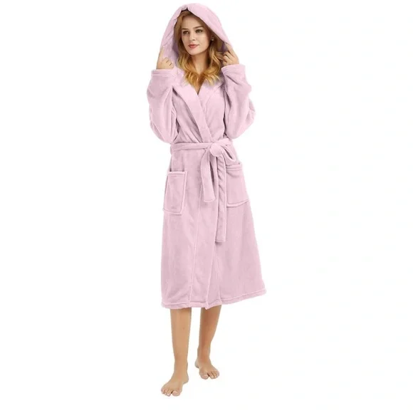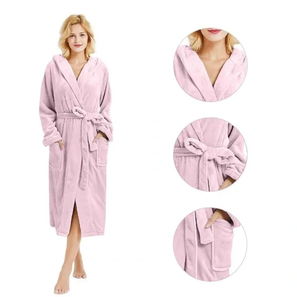 Fleece Robes, Soft Plush Long Bathrobe, Dusty Pink