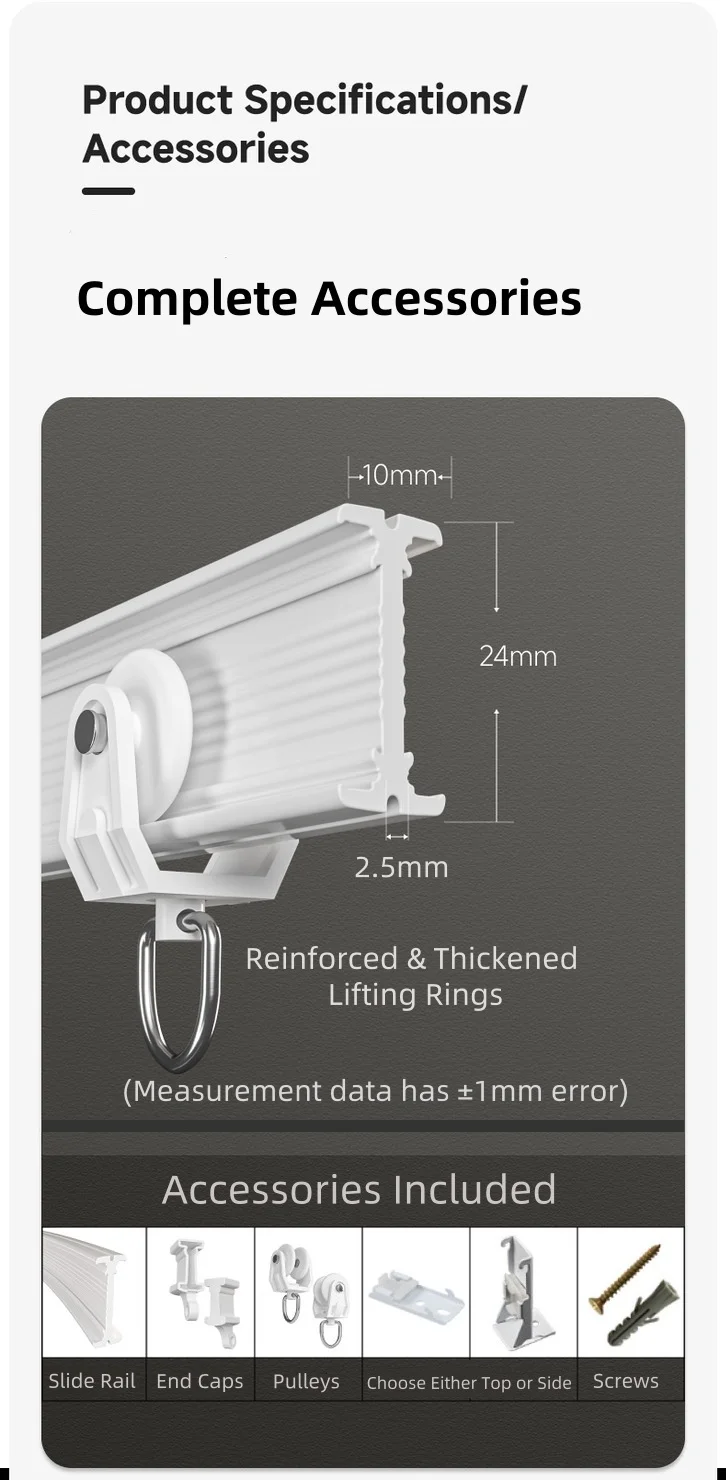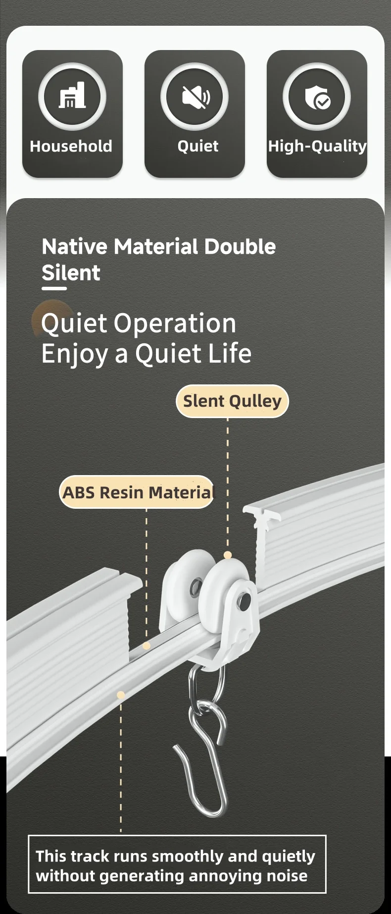 Mute Pulley System: Nano material pulleys ensure noise-free curtain movement, perfect for bedrooms.