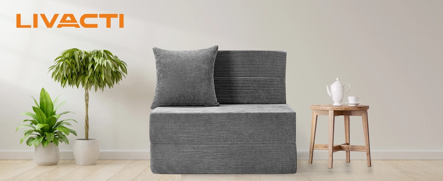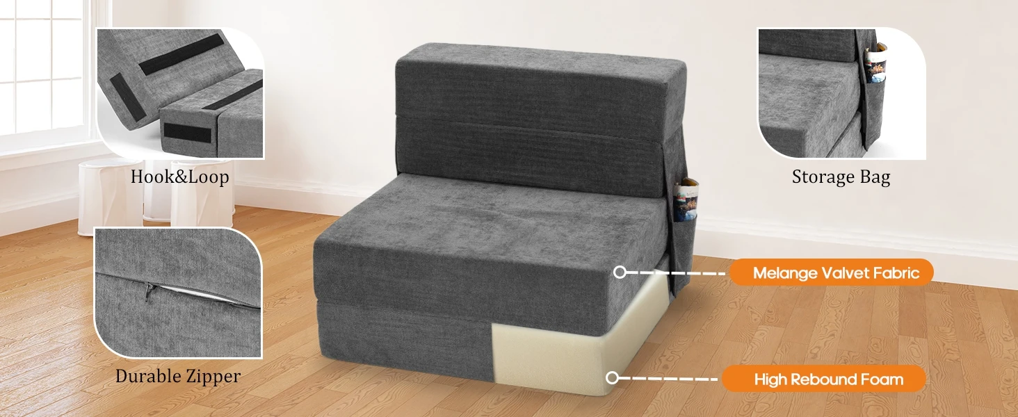 Folding Sofa Bed Memory Foam Fold Out Chair Bed Convertible Sofa Bed Chair Gray Single