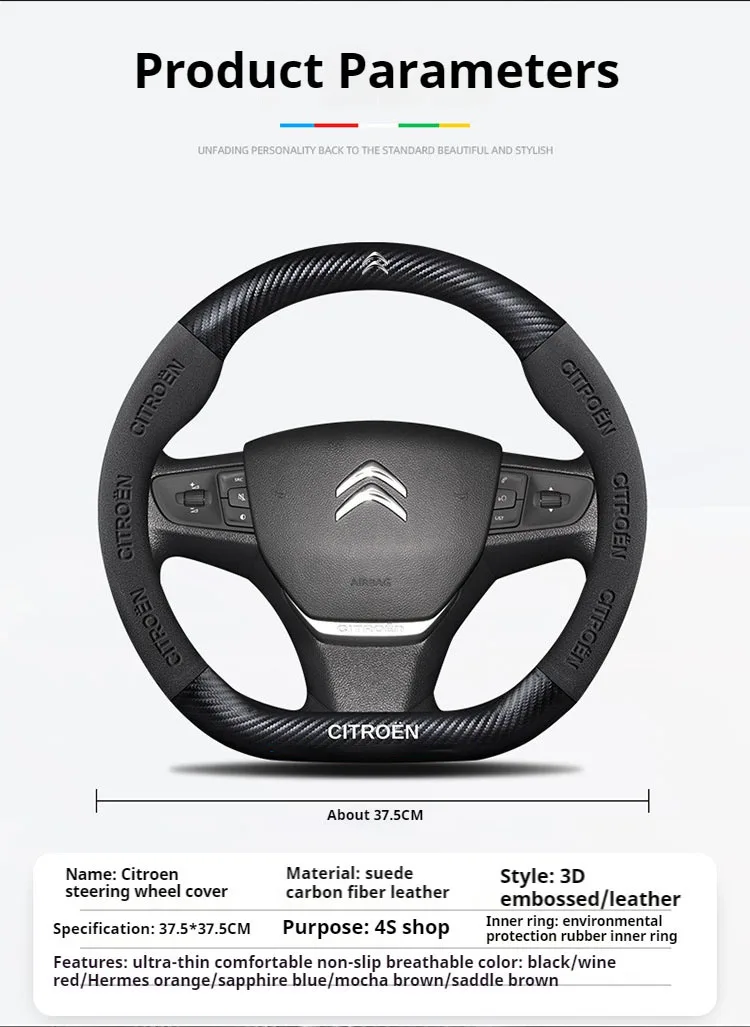 This steering wheel cover is only suitable for Citroën steering wheels measuring 37.5-38cm(14.76-14.96inch).