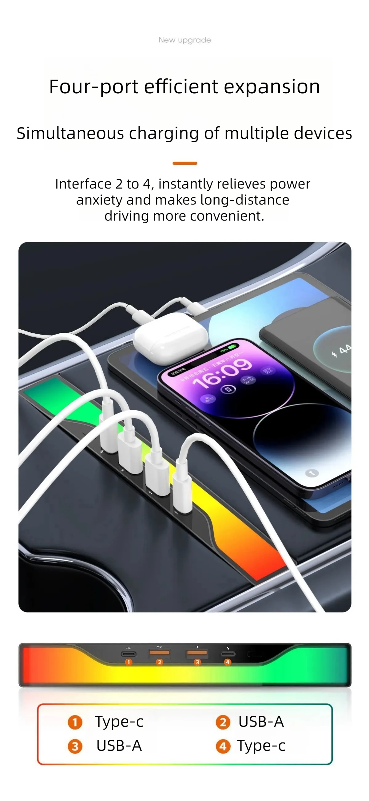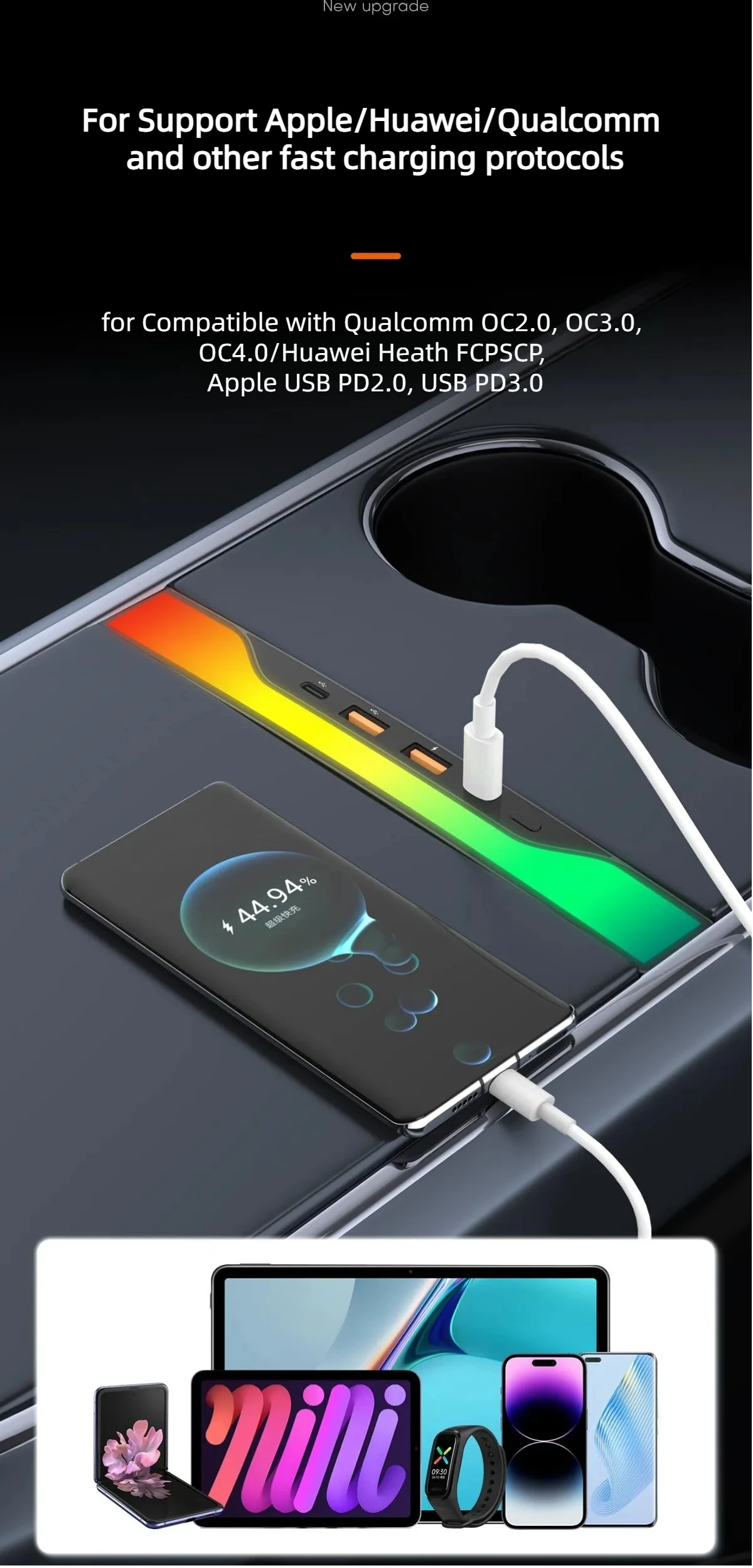 For Tesla Model Y 2023 Accessories USB Hub 4-Port 27W Fast Charger Smart Docking Station Adapter Power Shunt Splitter Extension