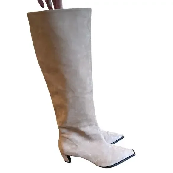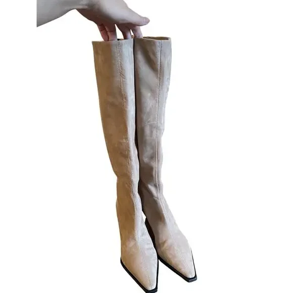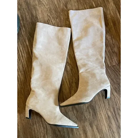So flattering! Buttery soft suede! Free People x Vicenza Tall Suede Boots Knee High Low Heel Pull On Sand BeigeSize: 8Retails $398Excellent, pre-owned condition!Everything I sell is 100% Authentic, Bid with confidence.** I’ll always respect your reasonable offer***** SHIPS within 24 hours! ***Please check out my other items for a 25% bundle discount and to pay only ONE shipping fee. Thank you for looking! *** Zimmermann, Cult Gaia, Ulla Johnson, Retrofete, Jacquemus, Ramy Brook, STAUD, Golden Goose, P448, R13, By Far, GANNI, Ronny Kobo, PatBo, Anine Bing, Acne Studios, Aje, Cinq a Sept, loveshackfancy, MISA, rococo sand, A.L.C., agolde, rag and bone, mousse vintage, citizens of humanity, Levi’s, Alice and Olivia, Hemant and nandita, patbo, free people, Veronica beard, Jonathan simkhai