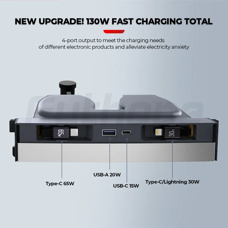 4. Higher power fast charging 30W+65W+20W+15W, totaling 130W