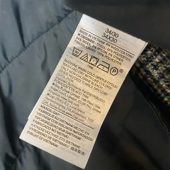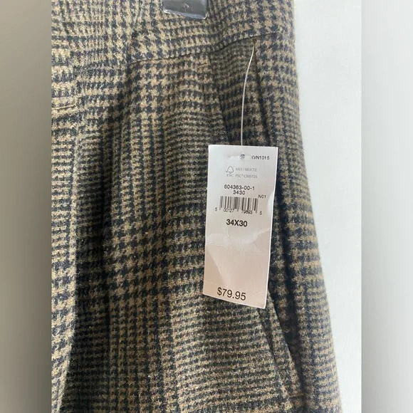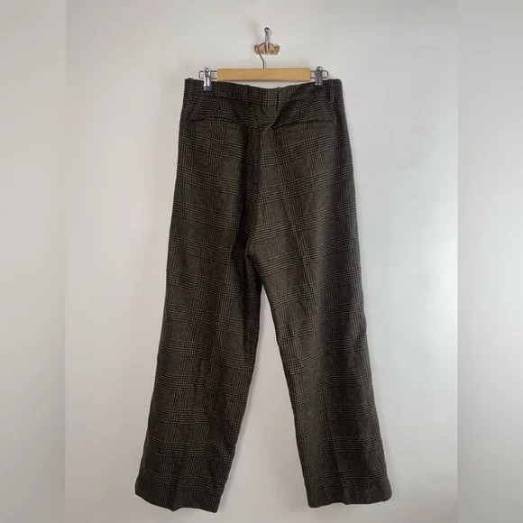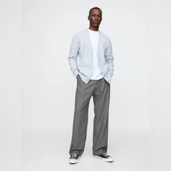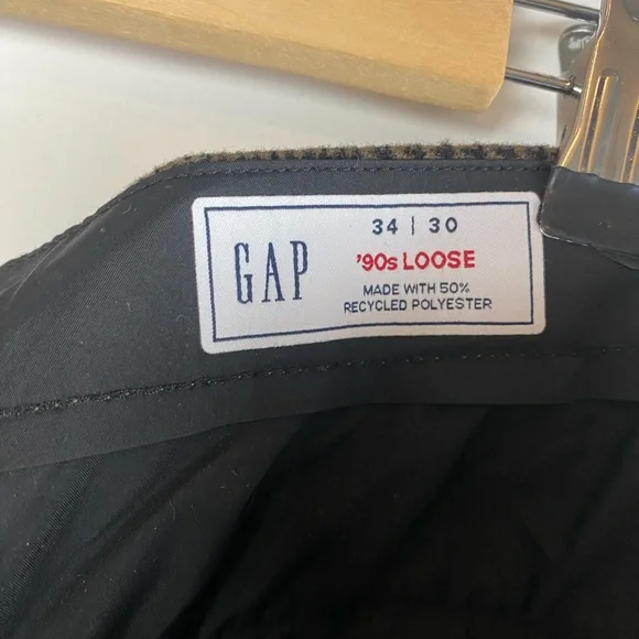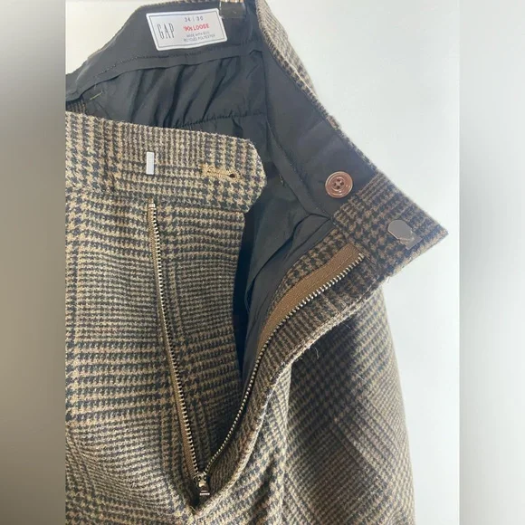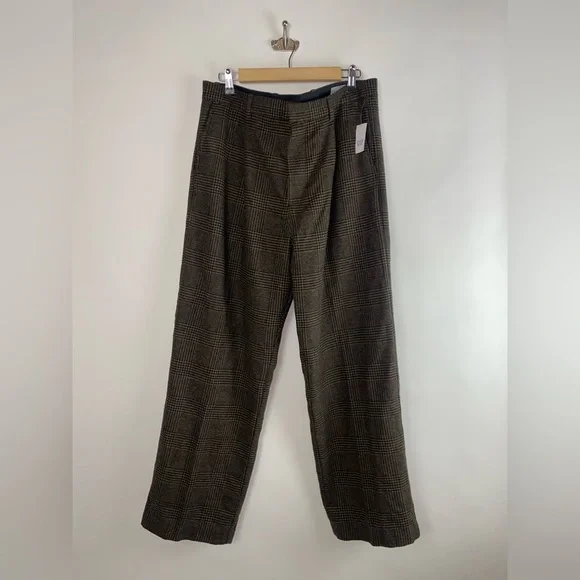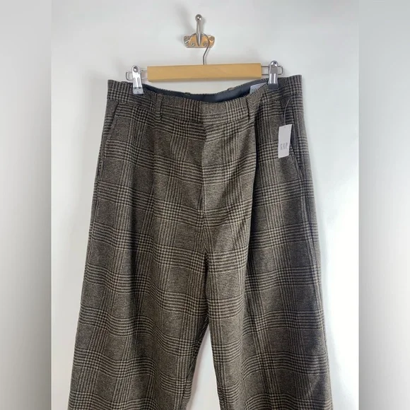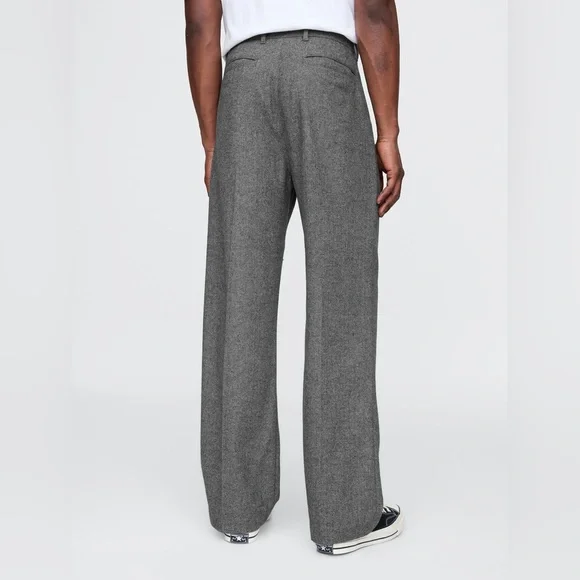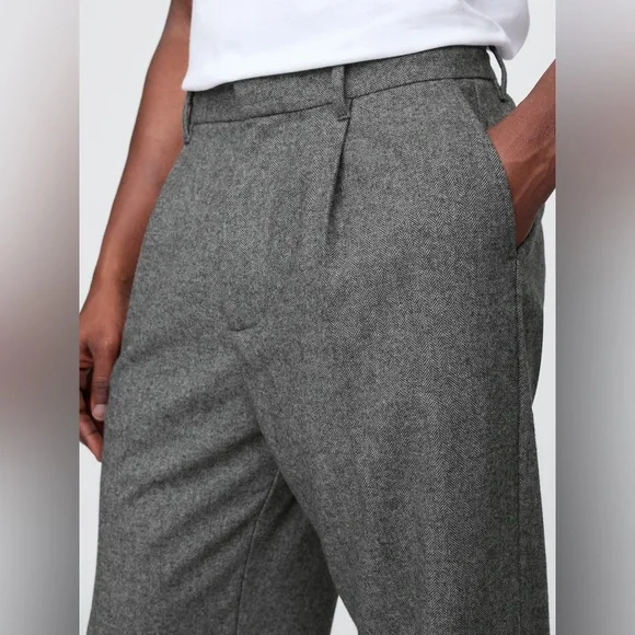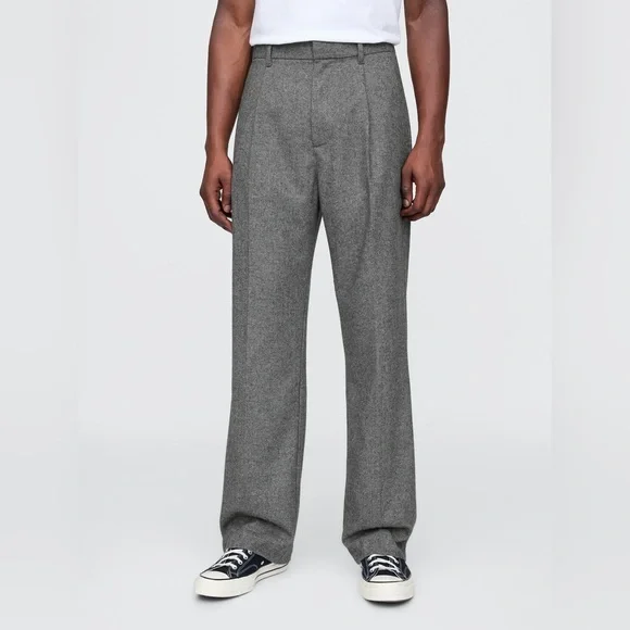 Our soft-structured, effortless essential that works all day, every day — now in a cozy wool-blend.- Soft wool-blend relaxed trousers.- Button closure, zip fly.- Front slant pockets, back welt pockets.- Pleating at front.- Stacked hem.- This trouser is made with 50% recycled polyester. Compared to virgin materials, using recycled materials helps to reduce resource use and waste.- 50% Polyester Recycled, 40% Wool, 10% Others.Size 34x30Approximate Measurements taken flat: Waist:17.5”Rise:14”Inseam: 29” (I believe with the long rise of these pants, they hang loosely to make up for a longer inseam)NWT. Last 4 (clearer) model photos in grey just to show relaxed loose style/fit. Same style from Gap, just different color.