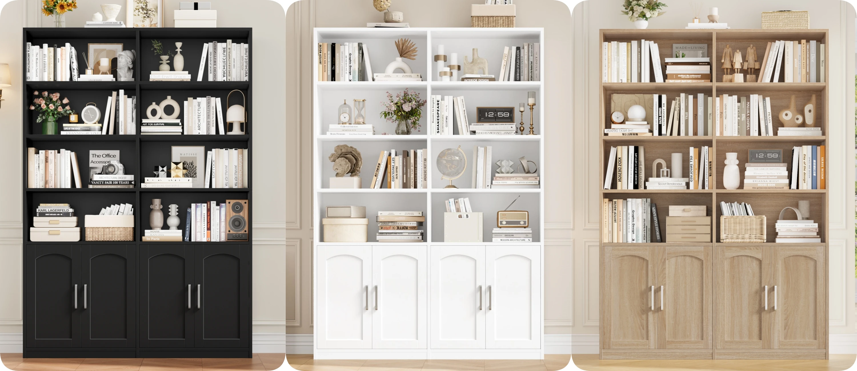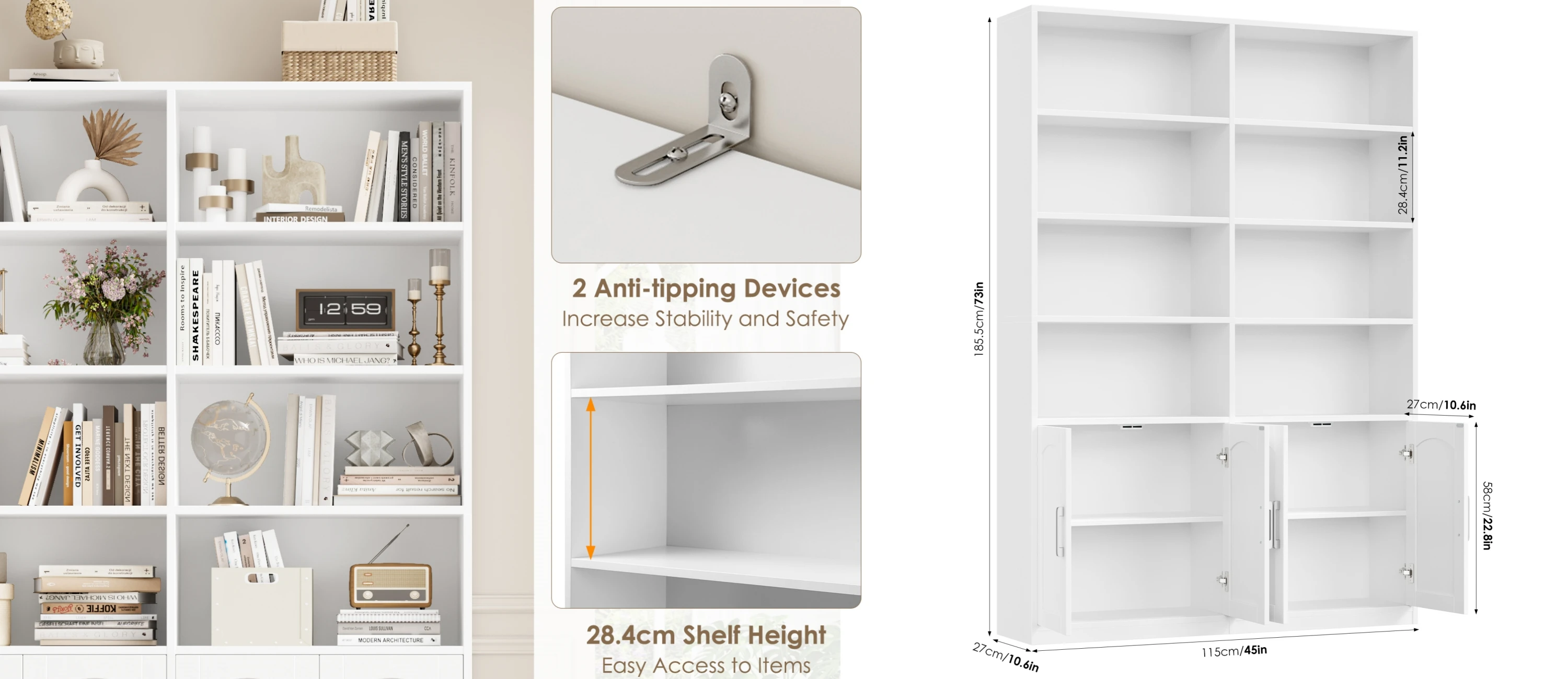 Comes with a tilt protection device to improve the stability of the bookcase.