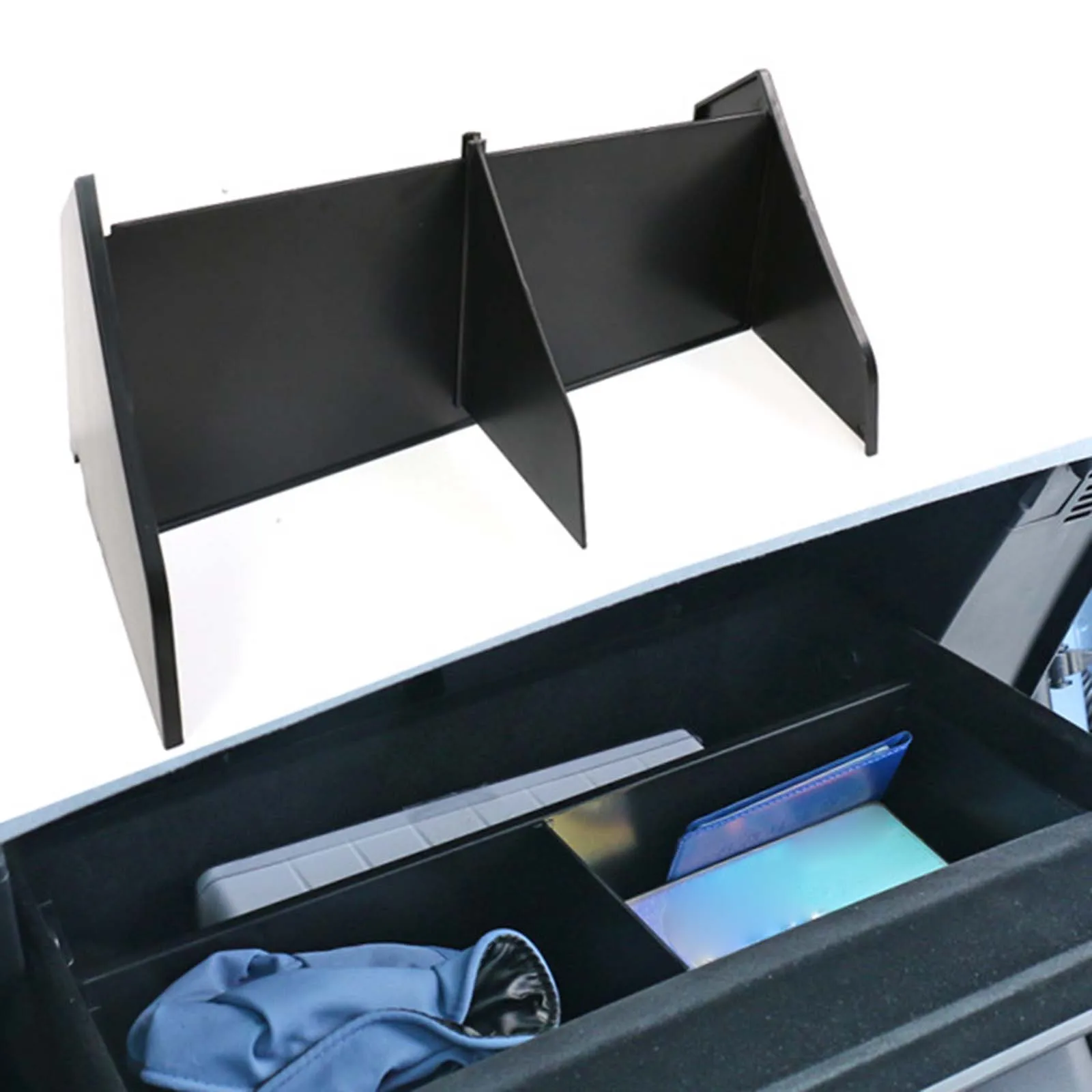 Function: The partition board is used to divide the space into 3Pcs space, split up the storage space of the glove box, making it look well organized, keep tidy, You can store cell phone, gloves and so on.