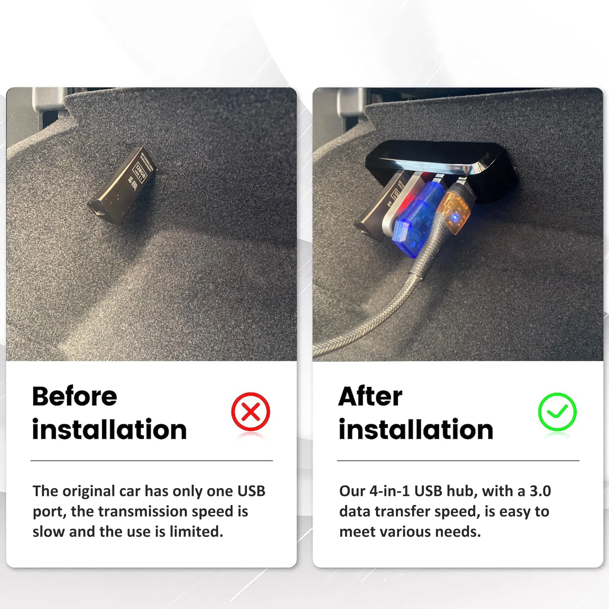 【Upgrade Your Experience】Our glove box USB hub is only applicable to Model Y 2021-2024 and Model 3 2021-2023. Use glass black colors, slim, no needless logo printed, the shape and glove box arc fit, let it install it inconspicuously in the glove box. Super simple upgrade that looks like it came from the factory interior accessory.【Please Note that it not fit the Model 3 highland 2024】