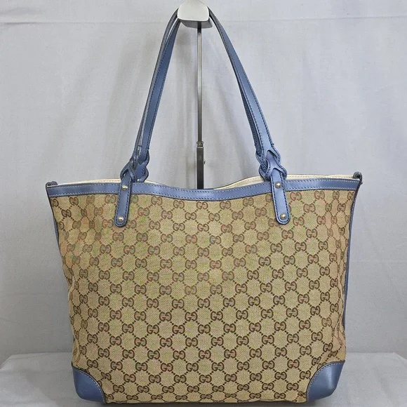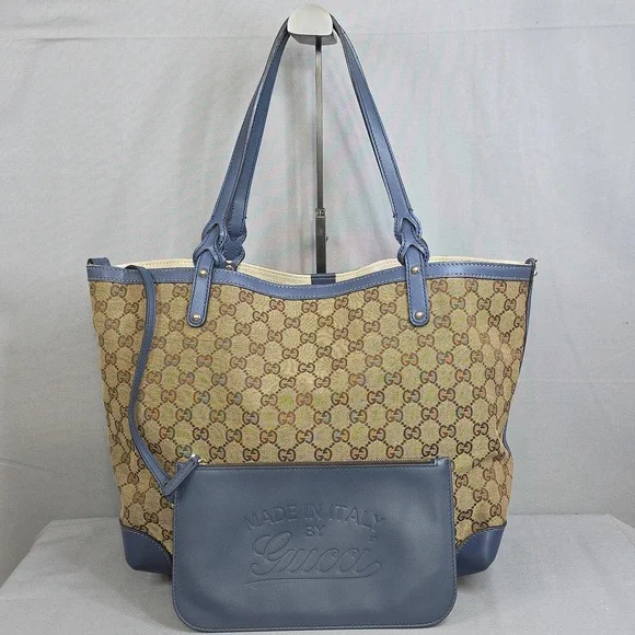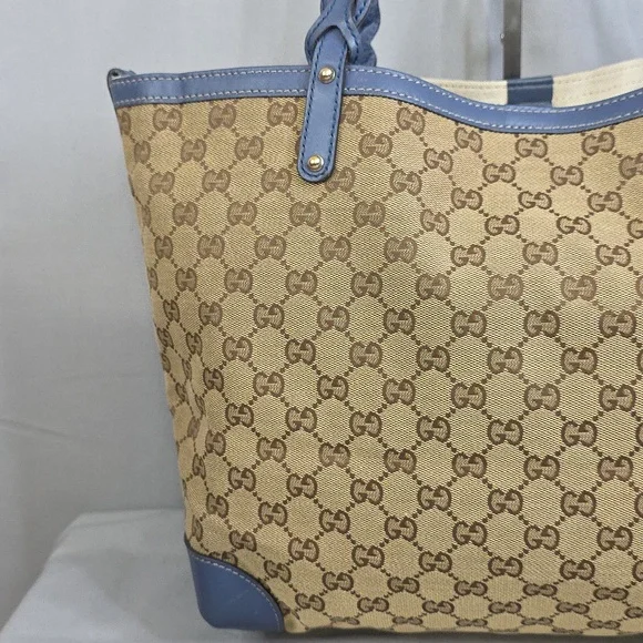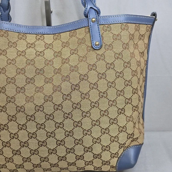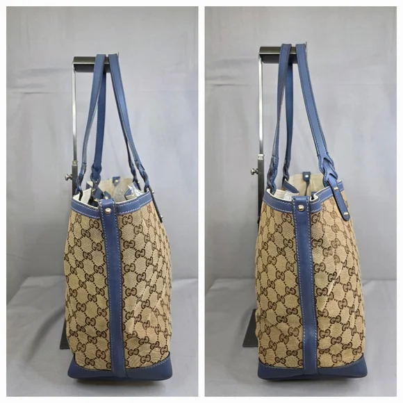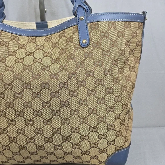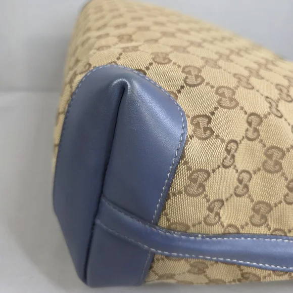💙 PRE-LOVED 💙☆Exterior : canvas has no rips, no tears, no stains☆Interior : lining has no rips, no tears, no stains☆Blue leather trim including handles has some creasing / scuffing,,no tears, no cracks☆Gold tone hardware☆Detachable blue leather zipped pouch included☆Open top with clasp closure☆Handle drop : 9.5"‼️Please see pictures for all details‼️💢 💯% AUTHENTIC 💢