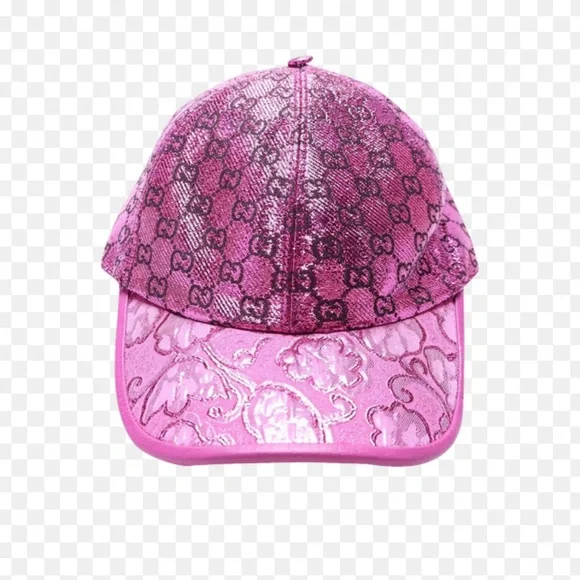 This Gucci purple baseball hat features a striking monogram pattern that adds a touch of luxury to your accessory collection. Crafted with a classic curved brim, it offers both style and sun protection. The hat's vibrant color and iconic design make it a standout piece for any ensemble.Gucci adds its token extravagance to this casual cap silhouette through its all-over metallic design. The style is crowned with the brand's famed GG monogram jacquard with a contrasting floral pattern covering the curved peak.Composition: Viscose 58%, Metallic Fibre 28%, Silk 14%Trims: calfskin 100%Lining: Cotton 65%, Viscose 45%Made in ItalySize M - circumference 57 cm
