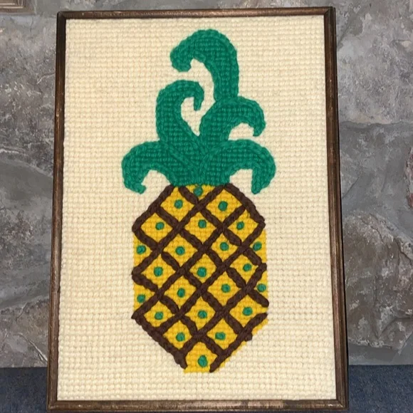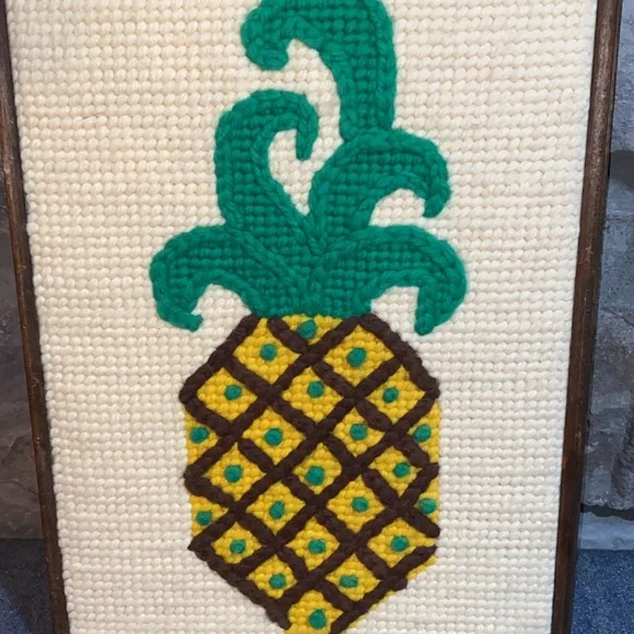 Vibrant pineapple design. Perfect for home decor for the hipster and adds a tropical 70s touch. Framed in Ardmore PA.MCMSwingerWelcomePineapple 70s60sHead ShopSmoke420CrochetStellar