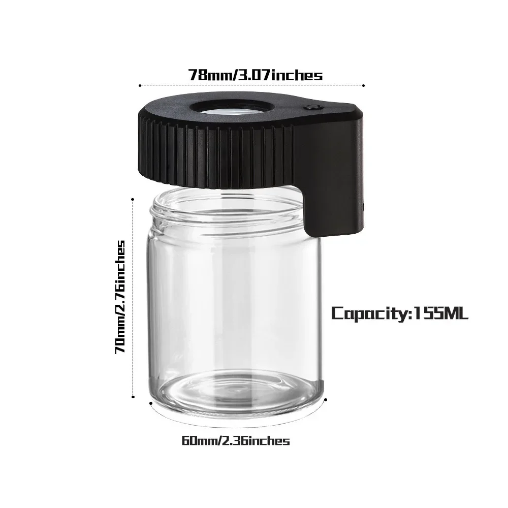Item:155ML LED Air Tight Pill Box Jar Bottle Herb Tobacco Seal Storage Jar Magnifying Jar Viewing Container Vacuum Seal Pill Box Jar