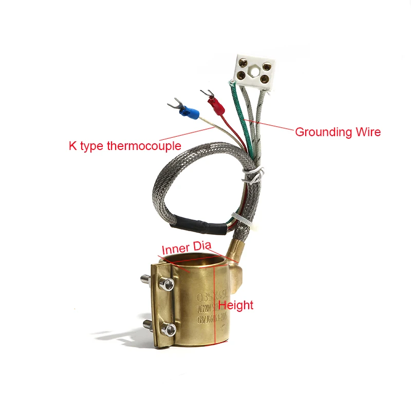 220V Electric Copper Barrel Brass Band Heater ID 30/32mm Height 30/50/60mm Two/Three/Five Wires For Injection Machine Heater