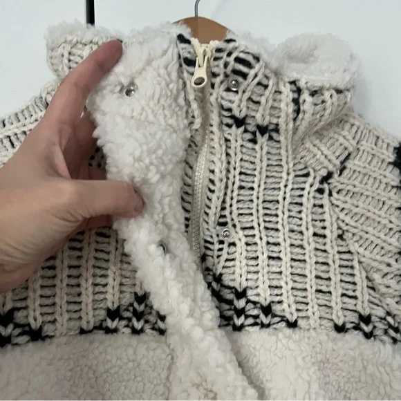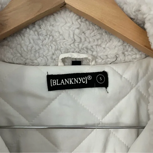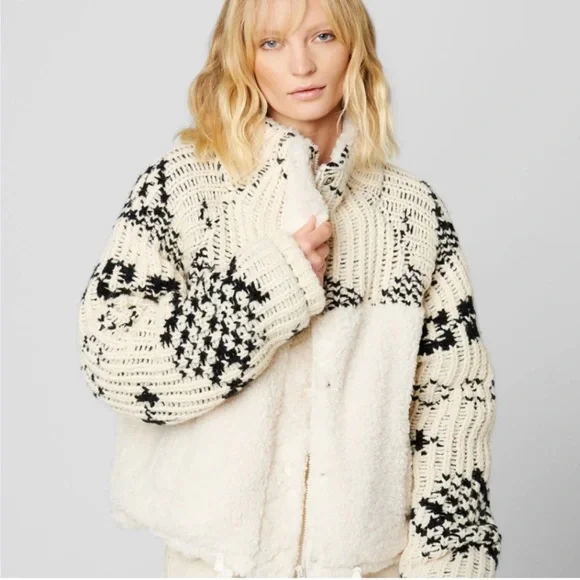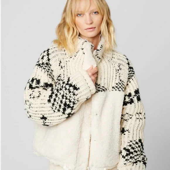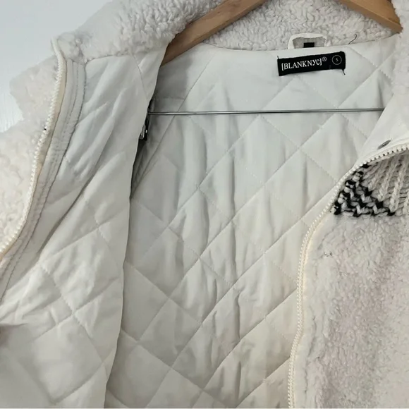 NEW Blank NYC Feeling Cozy Sherpa Sweater Jacket Size: SColor: White, Black printCondition: NEW without tagsDescription: Knit, Sherpa, zipper, snap buttons, cozy, warm, snugglySame day shipping available.Measurements available upon request