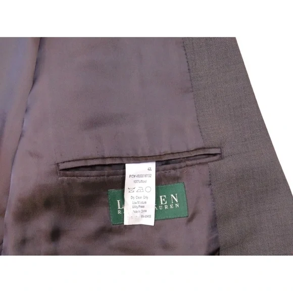 Description: NWOT Lauren Ralph Lauren LRL 100% Wool 2 Button Blazer Sport Coat Jacket-Two button closure -Two front flap pockets-Left chest pocket-Single vented back-Four button cuffs -Notch collarSize (Check Measurements): Mens 42 LColor: BrownFabric: 100% woolCondition: New Without TagsItem#: 66838Measurements are in inchesArmpit to armpit: 22"Back bottom of the collar to the hem: 32 3/4"Shoulder to shoulder: 19 1/4"Shoulder seam to end of cuff: 25 1/2"BUYING VINTAGE·We do our best to thoroughly inspect all items for any visible imperfections i.e., rips, repairs, holes, stains, etc. and note as such.·Please note vintage sizes are not always comparable to today's sizing. Please refer to the measurements in the description for a more accurate depiction of the true size. If an issue should arrive, please contact us prior to leaving a negative as we strive for providing excellent customer service.Please compare your measurements to the measurements provided in the listing description to ensure a proper fit. 64315