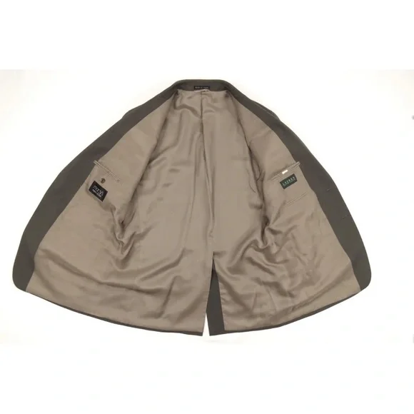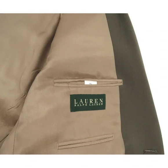 Description: NWOT Lauren Ralph Lauren LRL 100% Wool 2 Button Blazer Sport Coat Jacket-Two button closure -Two front flap pockets-Left chest pocket-Single vented back-Four button cuffs-Notch collarSize (Check Measurements): Mens 44 LColor: GreenFabric: 100% woolCondition: New Without TagsItem#: 66997Measurements are in inchesArmpit to armpit: 24"Back bottom of the collar to the hem: 32 3/4"Shoulder to shoulder: 20"Shoulder seam to end of cuff: 26 1/4"BUYING VINTAGE·We do our best to thoroughly inspect all items for any visible imperfections i.e., rips, repairs, holes, stains, etc. and note as such.·Please note vintage sizes are not always comparable to today's sizing. Please refer to the measurements in the description for a more accurate depiction of the true size. If an issue should arrive, please contact us prior to leaving a negative as we strive for providing excellent customer service.Please compare your measurements to the measurements provided in the listing description to ensure a proper fit. 64635