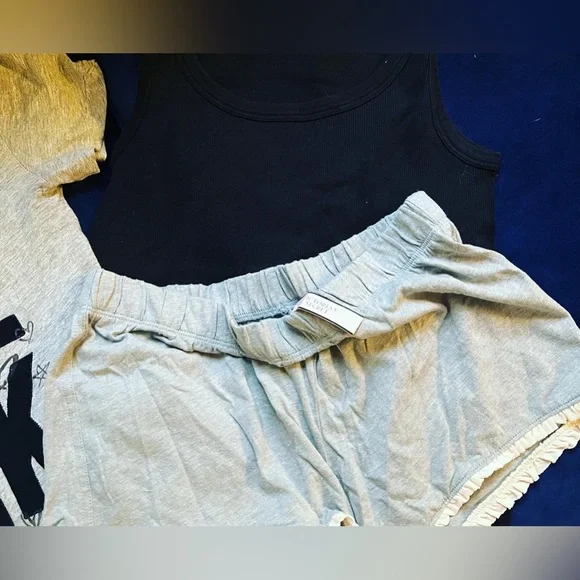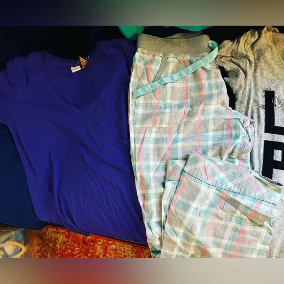 NWT NWOT EUC LOT VICTORIA’S SECRET DECREE GAP PAJAMA LOUNGE SMALLSIZE: SMALL1 NWT VS PURPLE V-NECK TOP SMALL1 NWT VS ULTRA SOFT RUFFLE SHORTS GRAY AND PINK SMALL1 EUC VS PLAID PASTEL COTTON DRAWSTRING PAJAMA PANTS SMALL1 EUC VS BLACK W LEOPARD POCKET OVERSIZED COTTON TOP SMALL1 NWT DECREE ULTRA SOFT ROYAL BLUE PURPLE TOP SMALL1 NWT H&M TEAL AQUA TOP SMALL1 EUC VINTAGE GRAY VS LOVE COTTON TOO SMALL1 EUC GAP BLACK TANK SRetail for all: $225