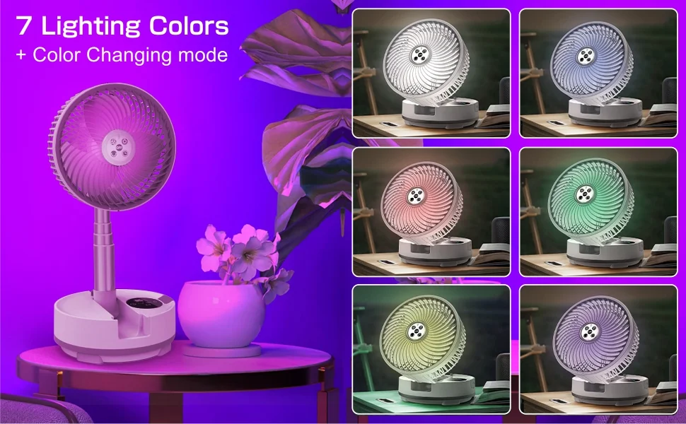 Newest 20000mAh Battery Operated Foldable Fan - Rechargeable Standing Fan, 112Hrs Works, Remote Control & Colorful Light, Oscillating Telescopic Fan, Timer & Digital Display, Foldaway Fan for Camping Travel OutdoorBattery Operated Foldable Fan - Rechargeable Standing Fan, 112Hrs Works, Remote Control & Colorful Light, Oscillating Telescopic Fan, Timer & Digital Display, Foldaway Fan for Camping Travel Outdoor