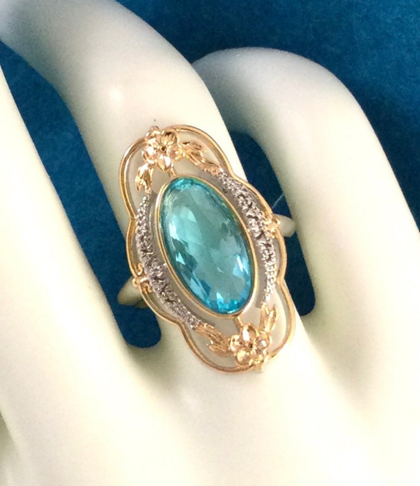 S925 2 tone auquamarine vintage ring