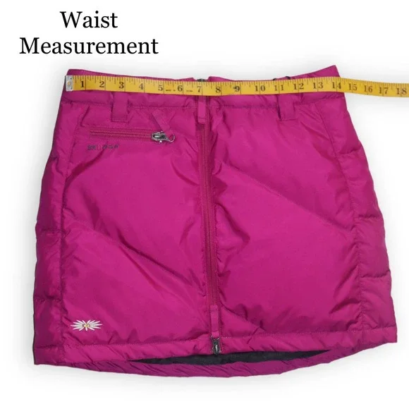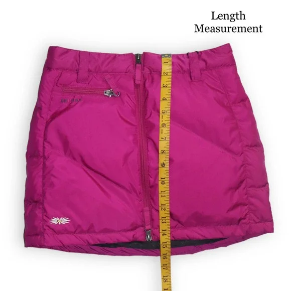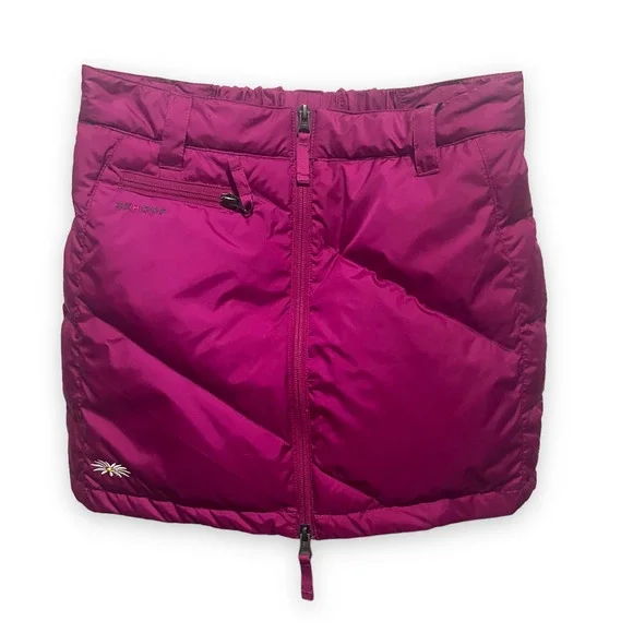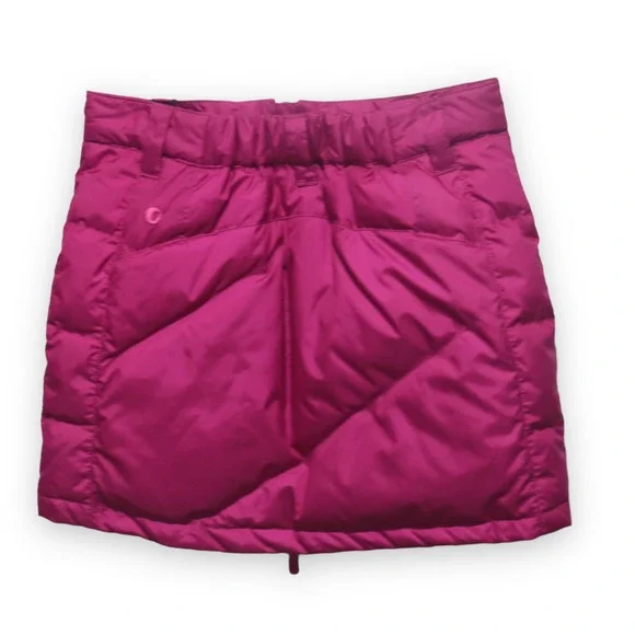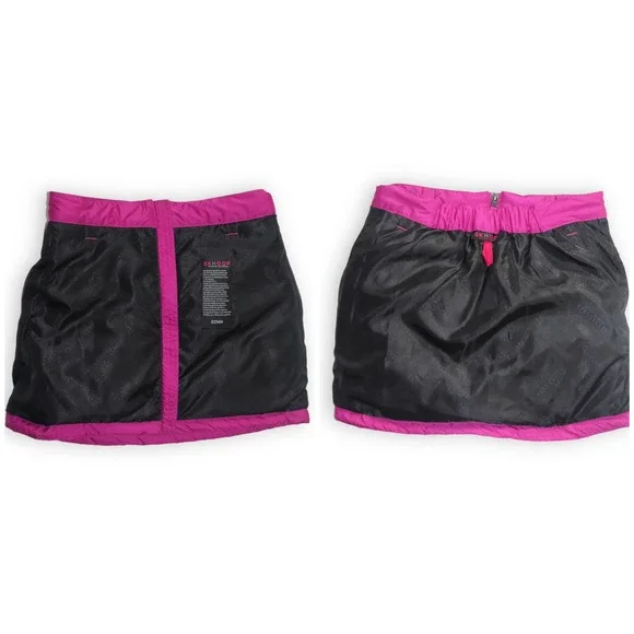 Skhoop Women's Mini Down SkirtFeatures:•Zip side pocket•Waistline belt loops•Rear waistline elastic•Ethically produced down•Full-zip entry for easy on and off over leggings or pants•Style suggestions: skirt can be slipped on over your leggings to keep you warm, or pulled on over your jeans for some extra insulation Care instructions: Wash with a gentle detergent (no fabric softener or bleach) on a low temperature setting and gentle cycle. Tumble dry on low with clean tennis balls, or dryer balls (these will help redistribute the feathers).Size: SmallCondition: Some tiny pin holes noted on right front waistband (see last photo); New With Tags (NWT) — no holes, stains or snags; Zippers intact and workingComes from smoke and pet free environment