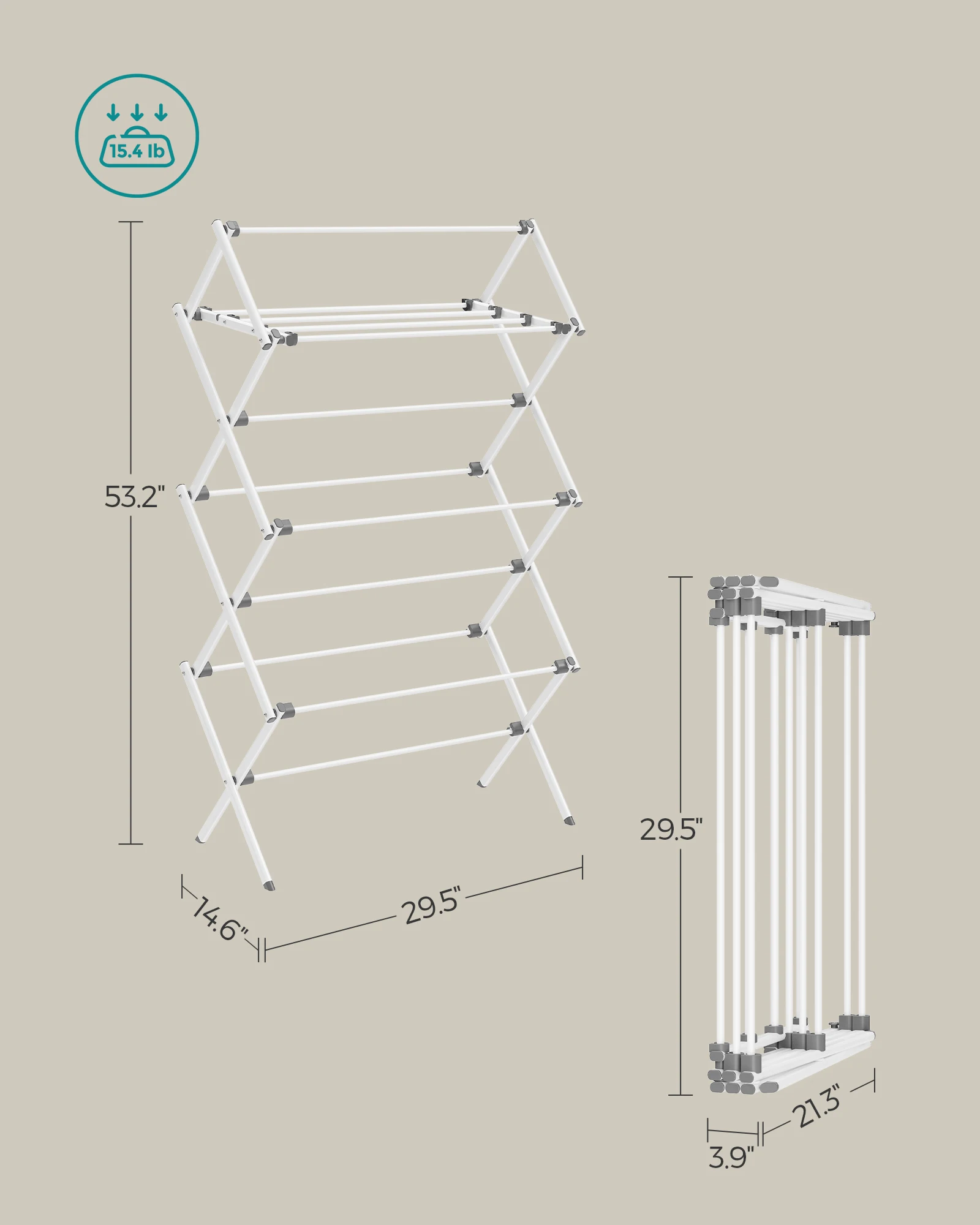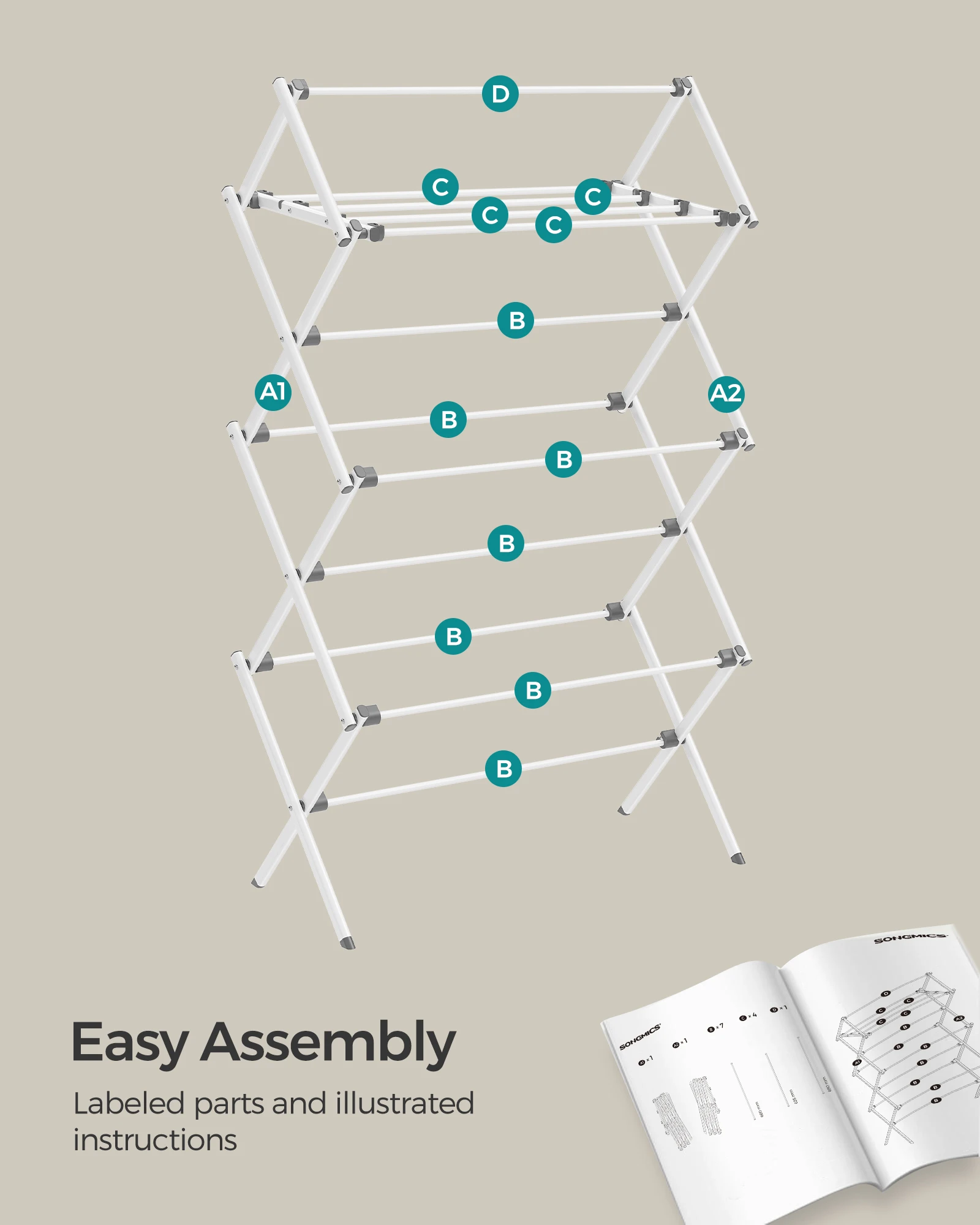 [Easy to Assemble & Fold Away] This clothes horse comes with illustrated instructions and numbered parts for easy assembly. When you don't use it, simply fold it up to a size of 3.9”D x 21.3”W x 29.5”H and store it behind your wardrobe