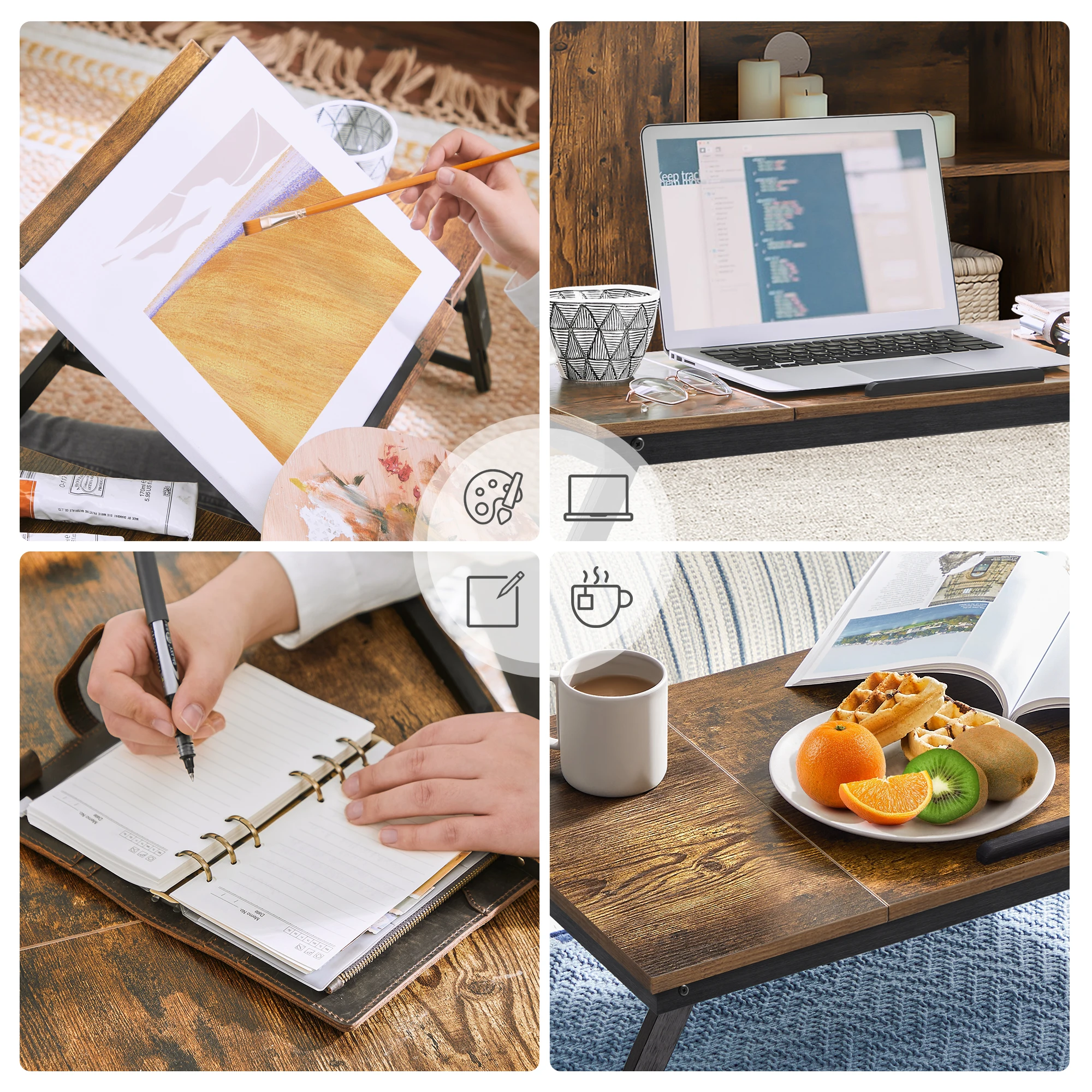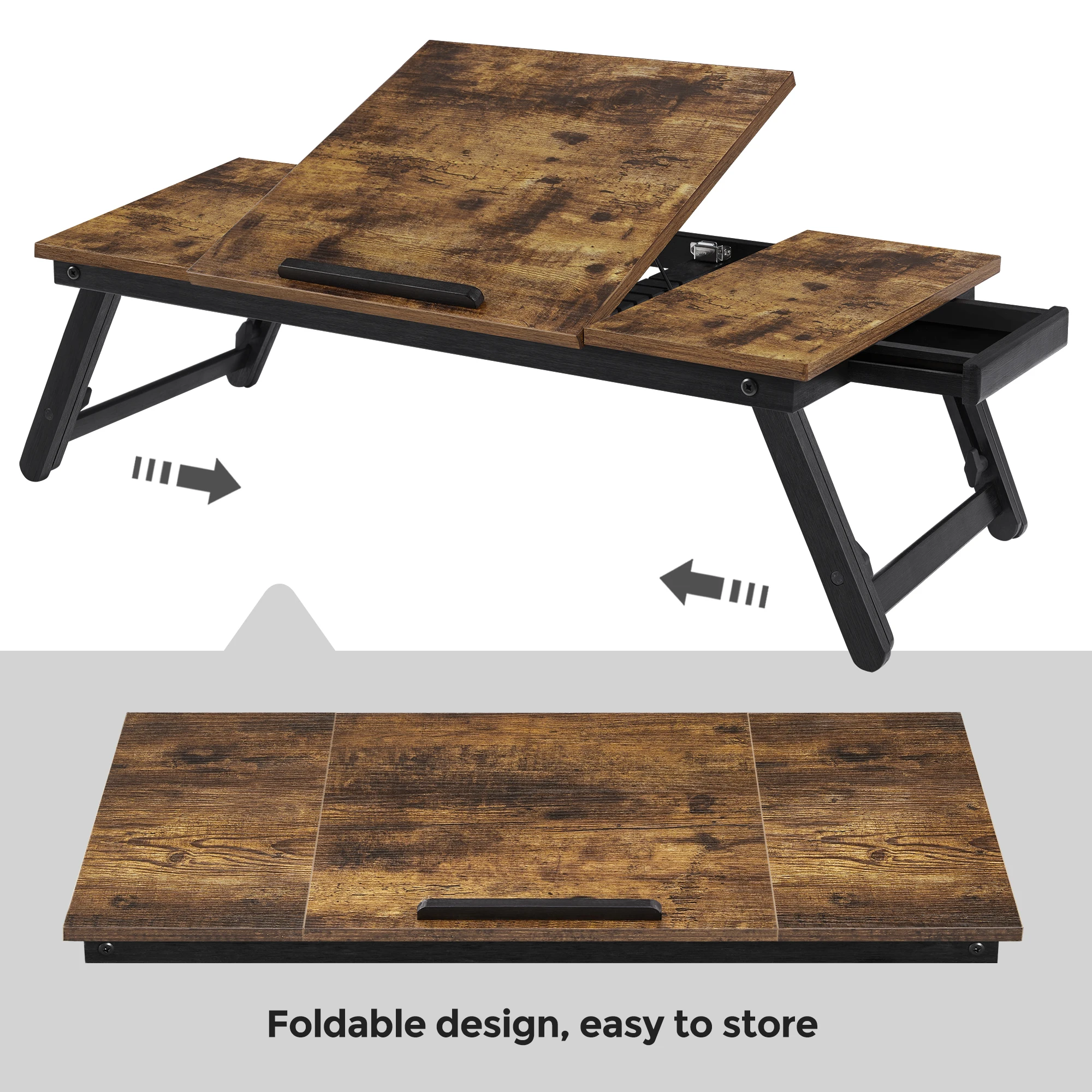 • [What You Get]: A foldable, adjustable laptop tray that boasts a timeless rustic dark brown colour, and just like its robust structure, accompanies you for a healthy lifestyle