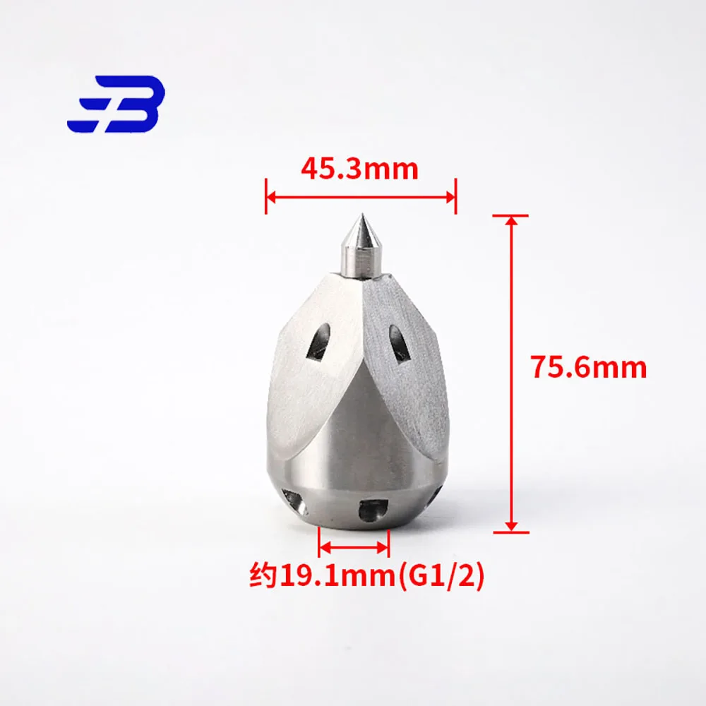 Stainless Steel 1/2" High-pressure Pipeline Cleaning and Dredging Nozzle, Sewer SPEAR POINT NOZZLES