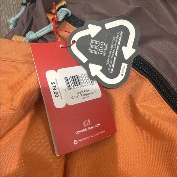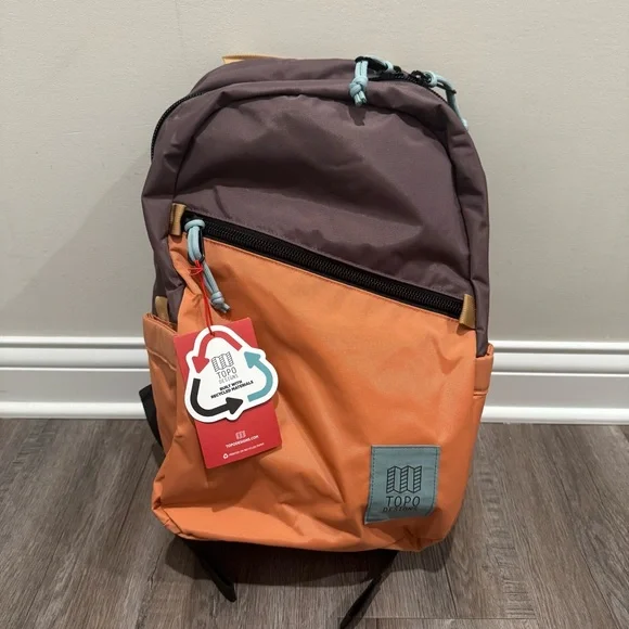 TOPO Designs Light Pack 15L Backpack in Coral PeppercornNWT MSRP $80 UnisexBrand new never worn with tagsWith a padded base and sides and a large internal laptop sleeve, the Light Pack is designed to keep your stuff safe when you're running through the quad or hiking in the woods. The diagonal exterior zippered pocket features two slip pockets for organization. Our signature PackFast™ Travel Bag attachment loops mean you can hook the Light Pack up to our Global Travel Bag to consolidate your travel system into one easy-to-carry form.Padded base and sidesInternal laptop sleeveExterior zippered pocket with organizationPackFast™ Travel Bag Attachment LoopsMaterials- 400D recycled nylon pack clothDimensions- 10″w x 17.5″h x 5.5″dVolume- 915 cu. in. / 15 LAccepting offers ❤️