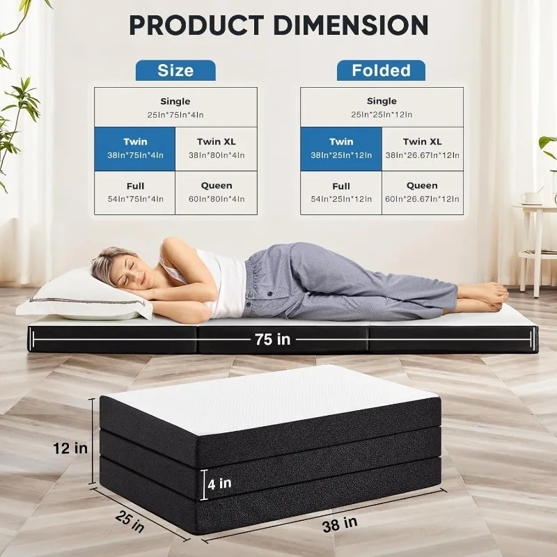 【Wide Applications】 This tri-fold memory foam mattress is the perfect solution for temporary sleep, the foldable mattress is specially designed for small spaces, suitable for travel, camping, RV, guest room floor bed mattress!